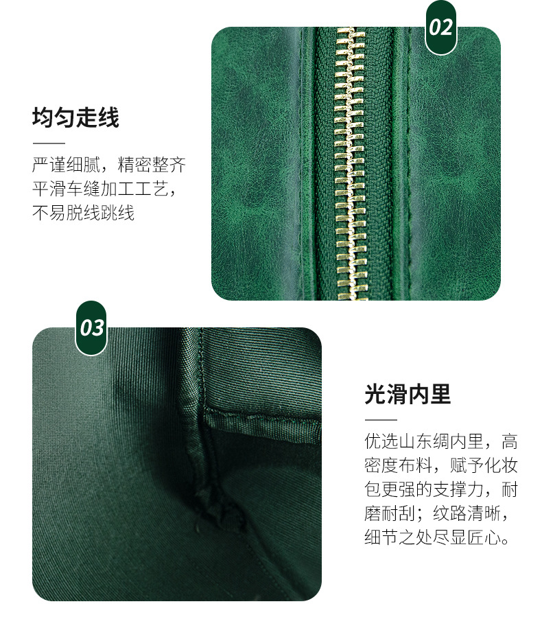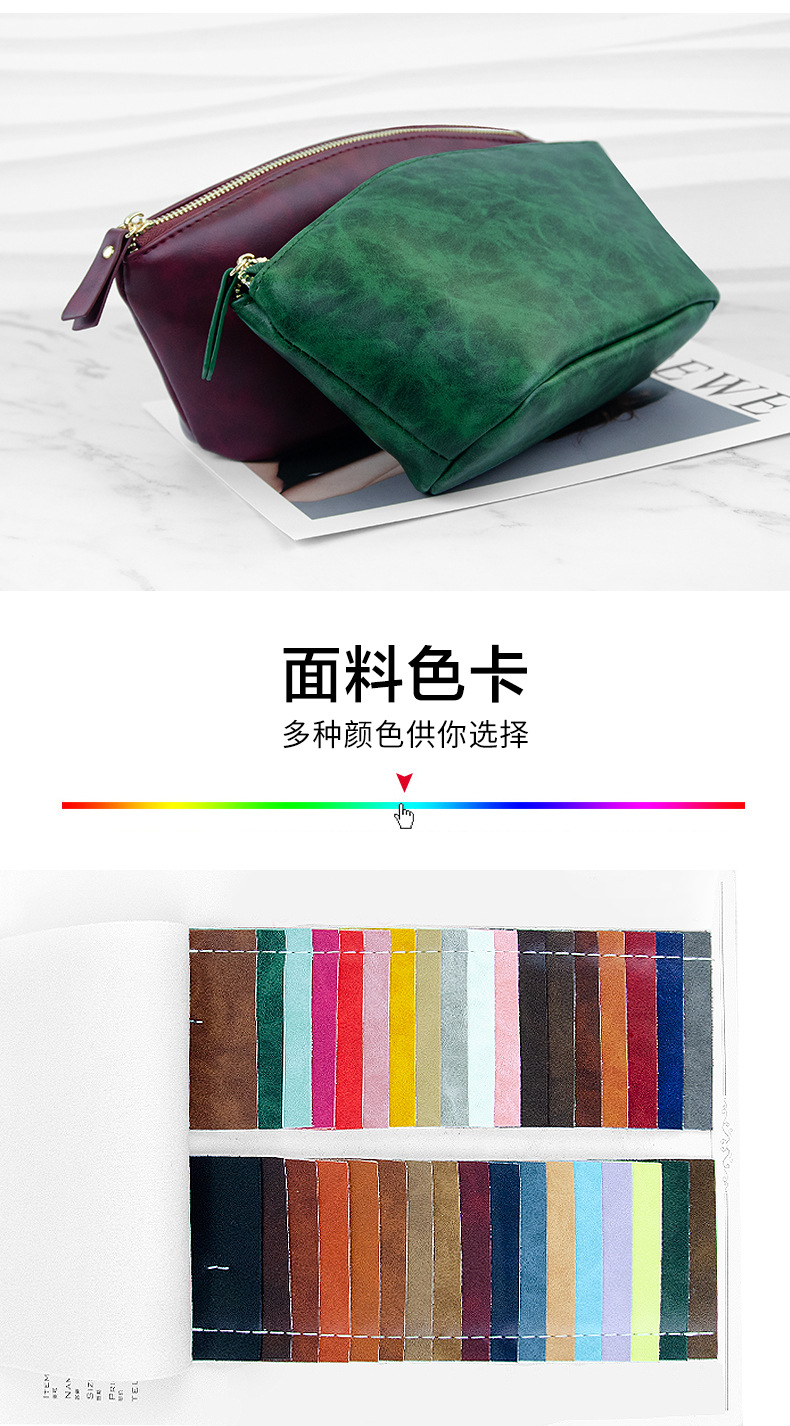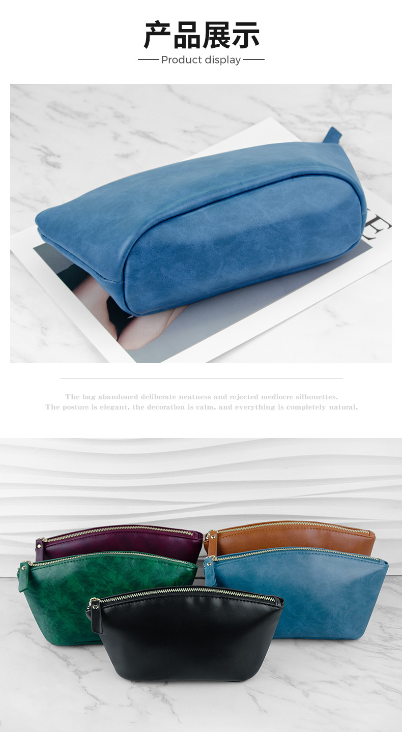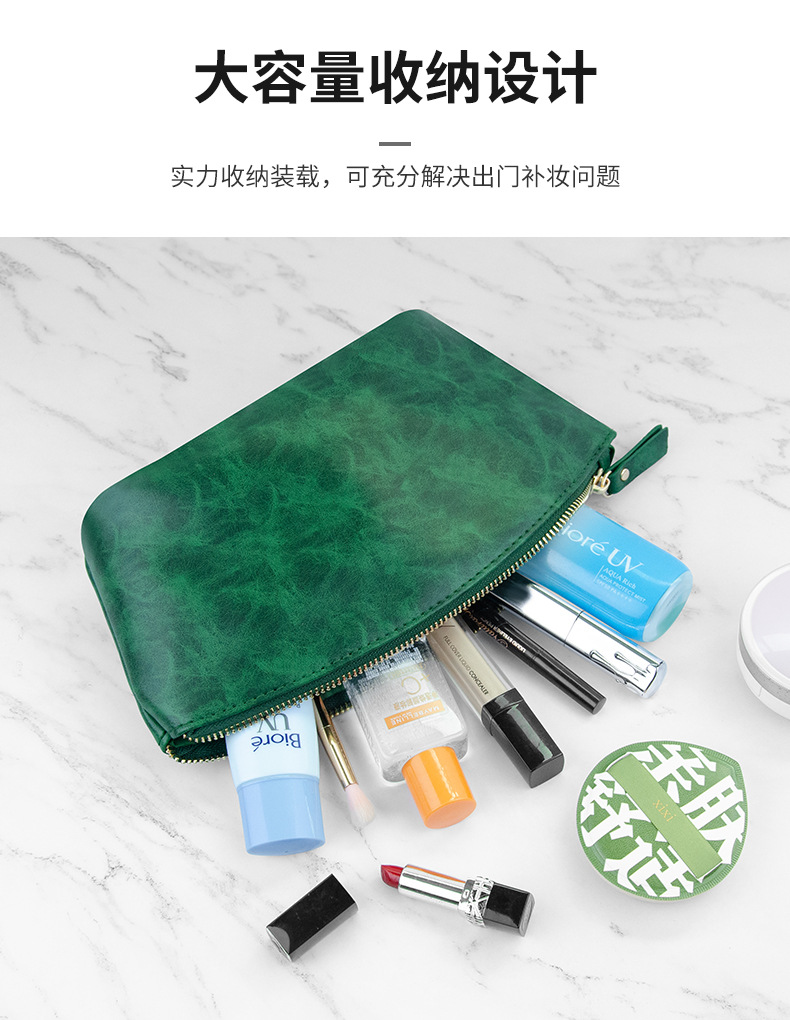Cosmetic bag2025新款化妆包英伦复古疯马皮革手拿拉链化妆袋便携