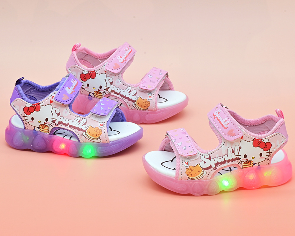 2025 여름 새로운 어린이 샌들 한국식 트렌디 한 KT 고양이 소녀 샌들 Led 글로우 라이트 어린이 비치 슈즈 아동용 신발스토어 가기