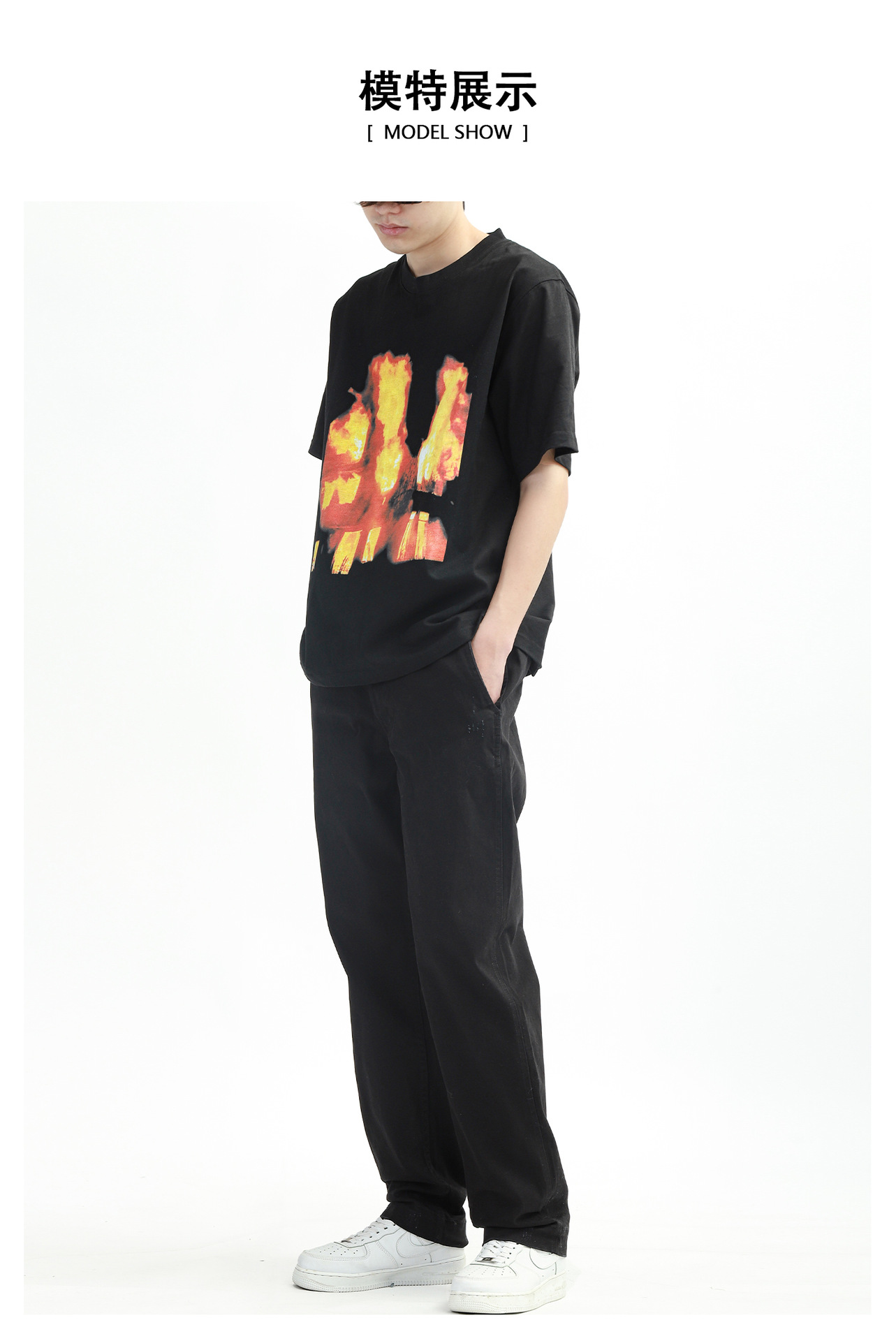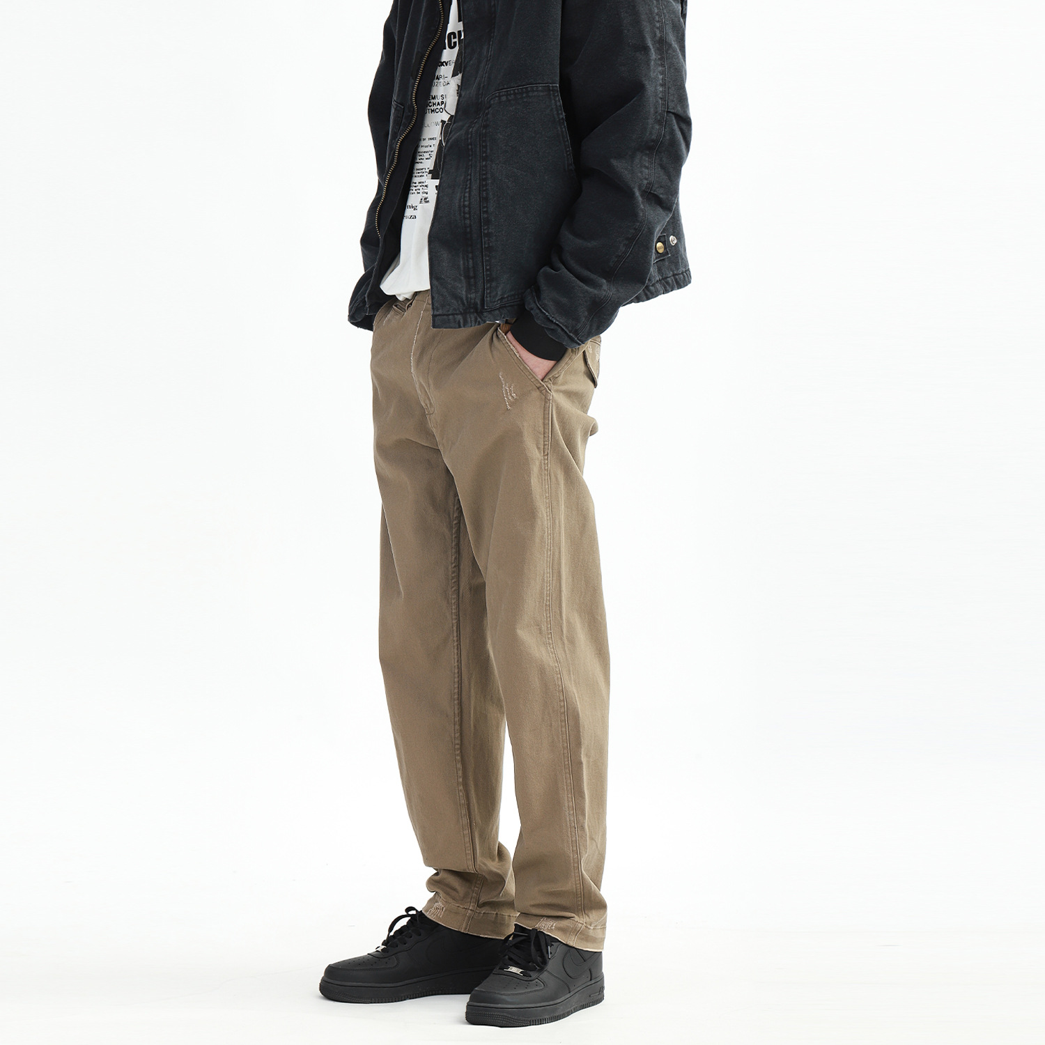 아메리칸 스타일 올드 데님 바지 조정 가능한 세척 가능한 파괴 거리 착용 방지 스트레이트 남성용 마이크로 탄성 하이 스트리트 Cordwork 바지스토어 가기