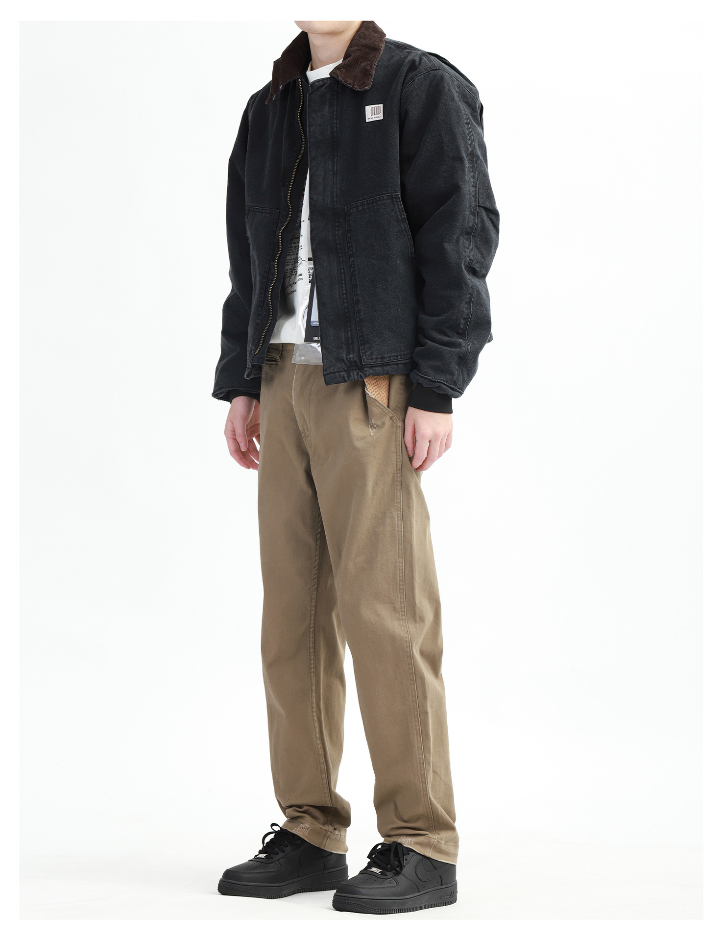 아메리칸 스타일 올드 데님 바지 조정 가능한 세척 가능한 파괴 거리 착용 방지 스트레이트 남성용 마이크로 탄성 하이 스트리트 Cordwork 바지