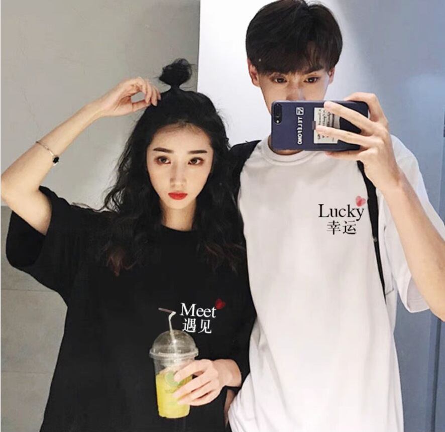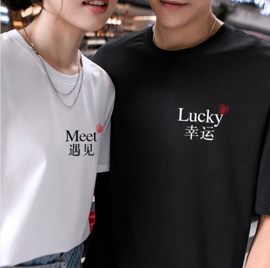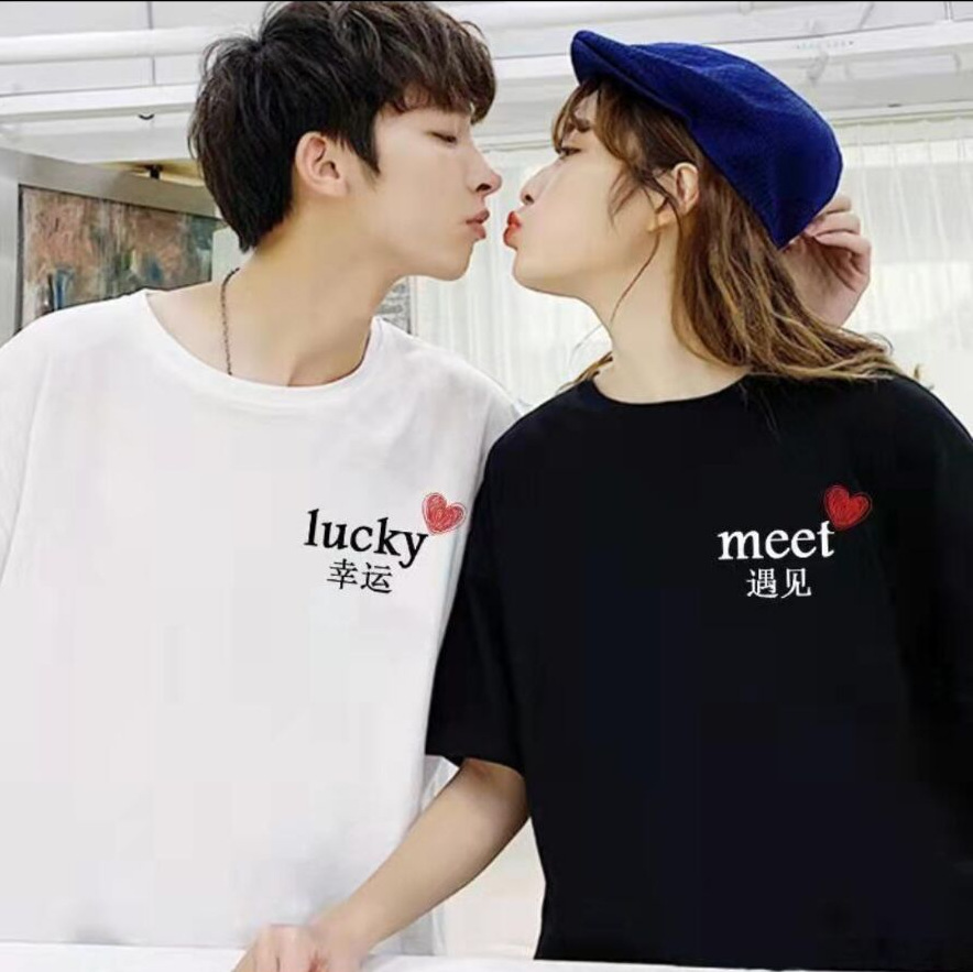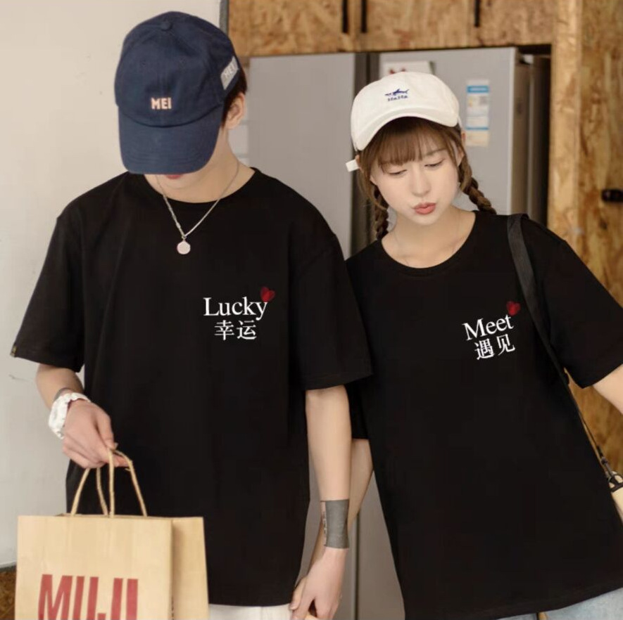 2025 새로운 도착 올매치 반팔 티셔츠 행운의 만남 남녀 부부의 부모 느슨한 반팔 티셔츠