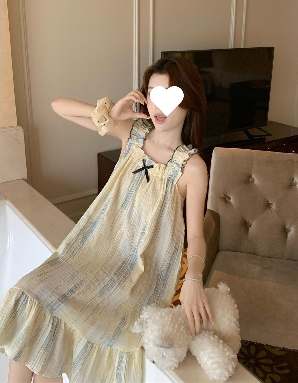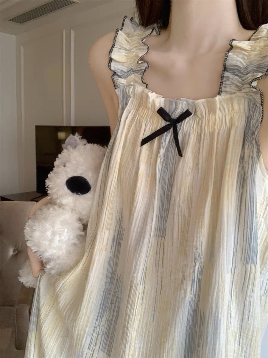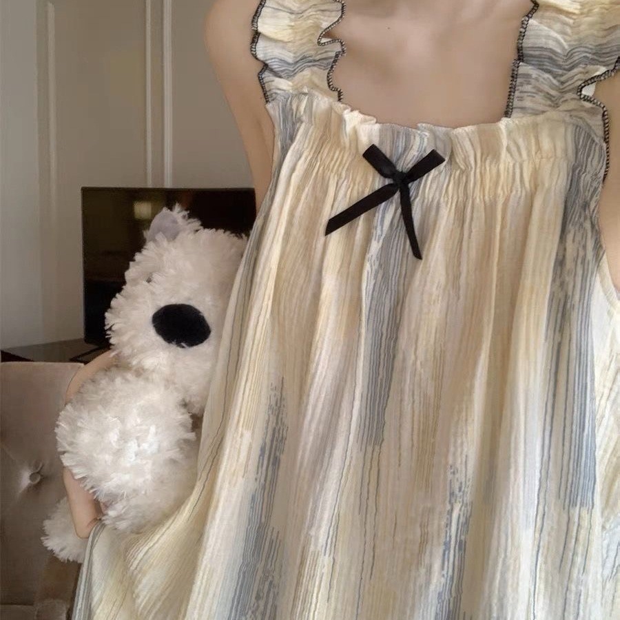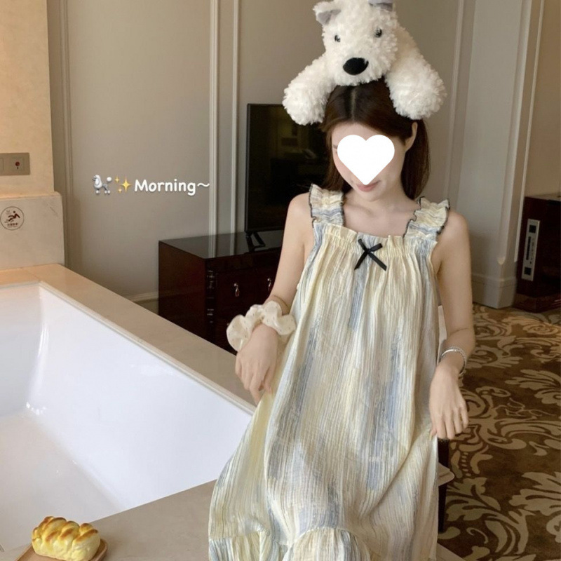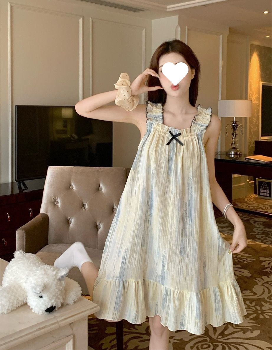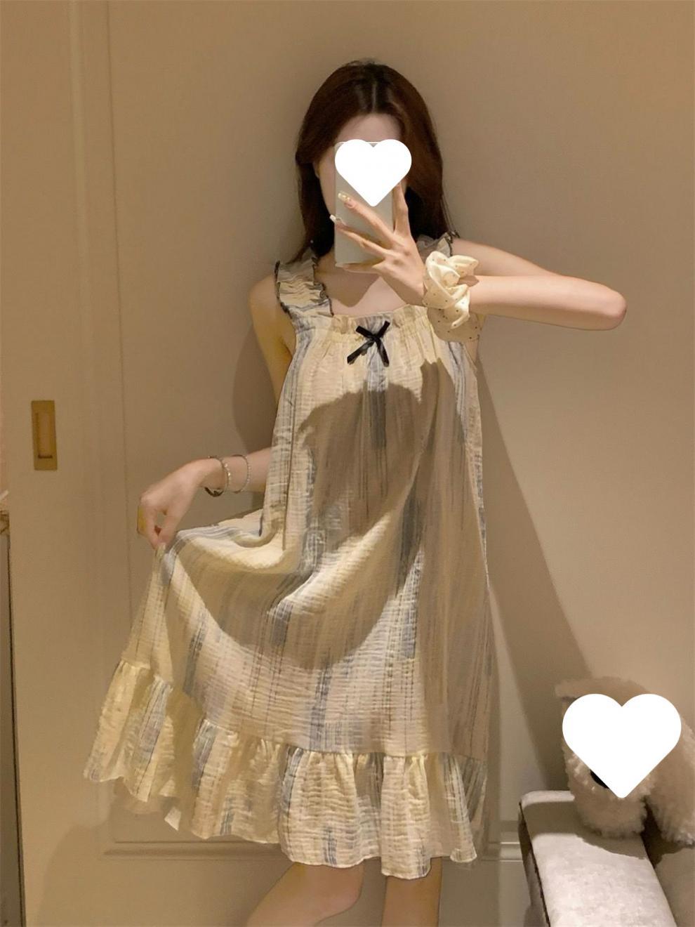 나이트가운 여성의 여름 일본 스타일 공주 스타일 달콤한 꽃 학생 슬링 민소매 나이트가운 얇은 외형 가정 옷스토어 가기