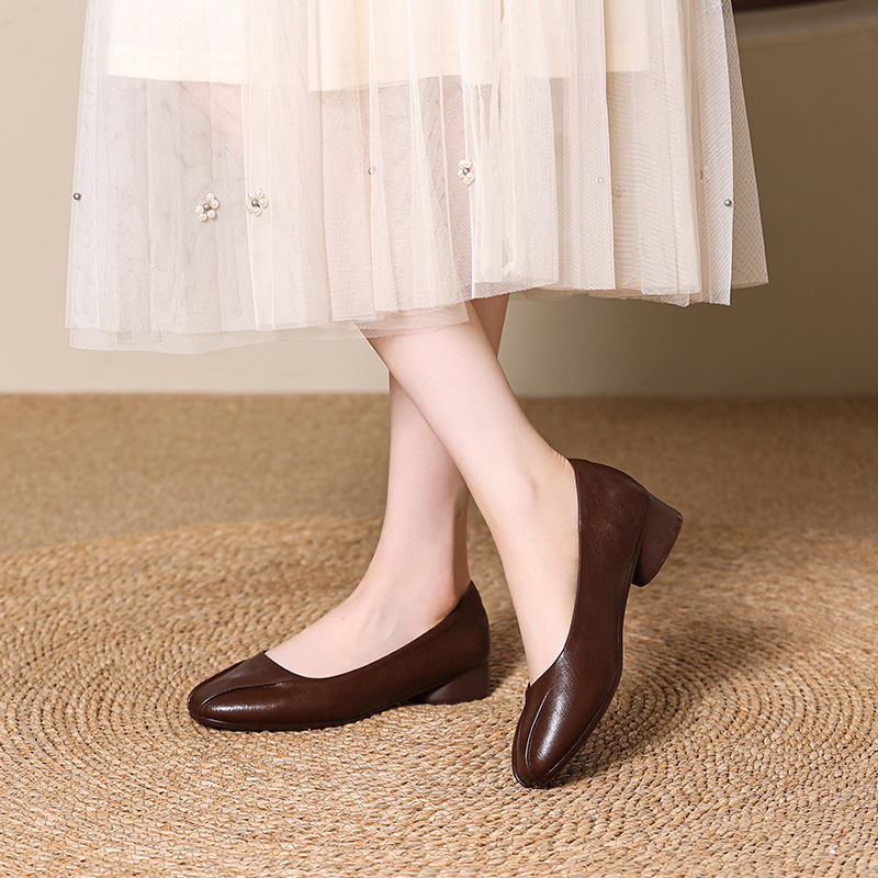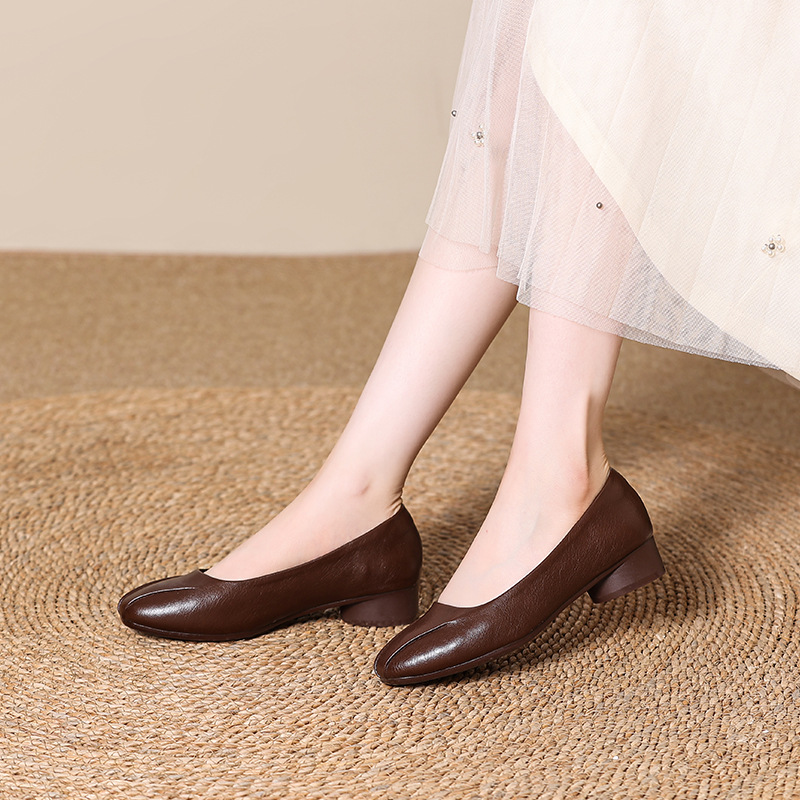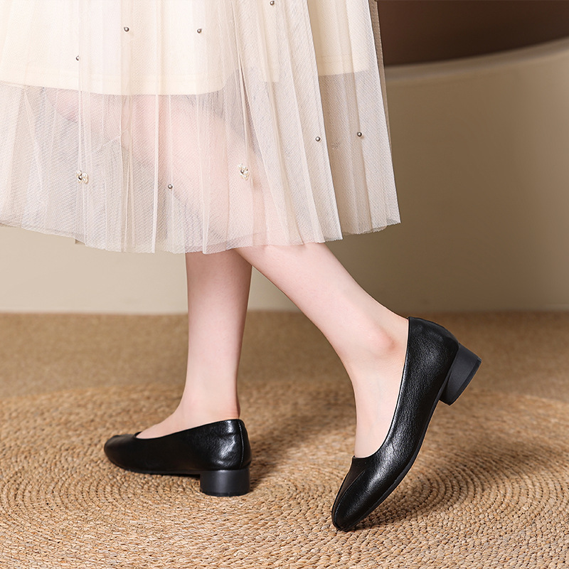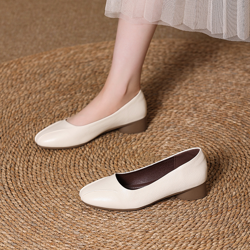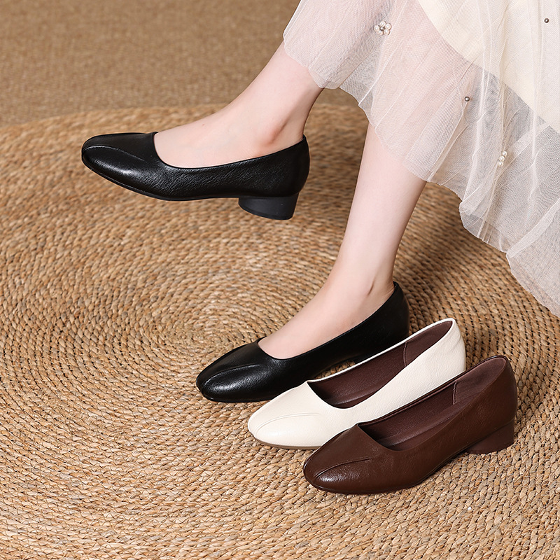 정품 가죽 프렌치 두꺼운 굽 플랫 슈즈 여성 신발 봄과 가을 새로운 스타일 엄마 기질 여성 부드러운 밑창 가죽 신발 6678
