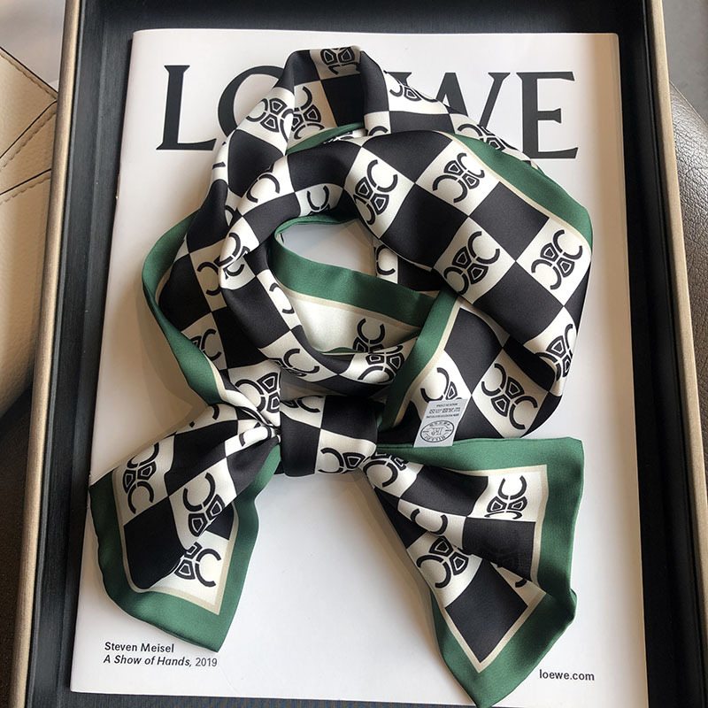 봄과 여름 통근 장식 전문 얇은 좁은 스카프 헤어 스트랩 넥타이 백 스트랩 인 여성을위한 모든 경기 편지 체크 무늬 실크 스카프스토어 가기