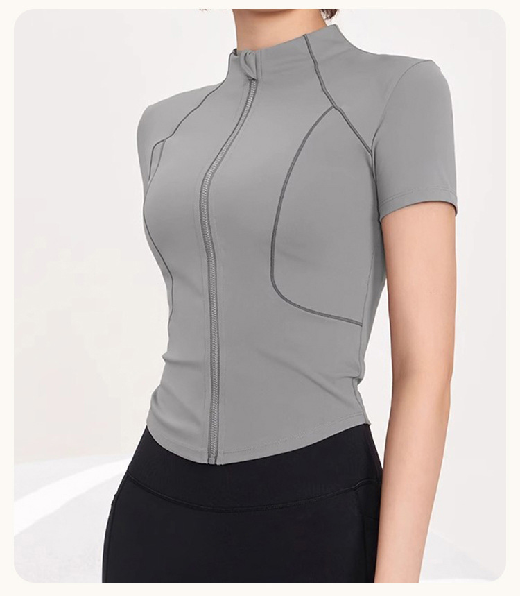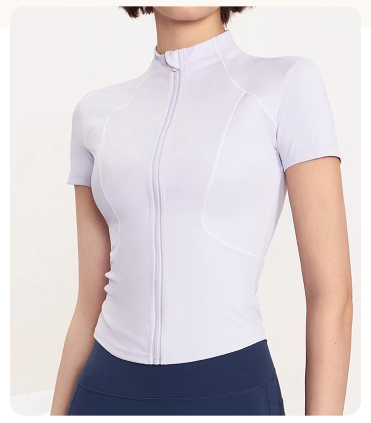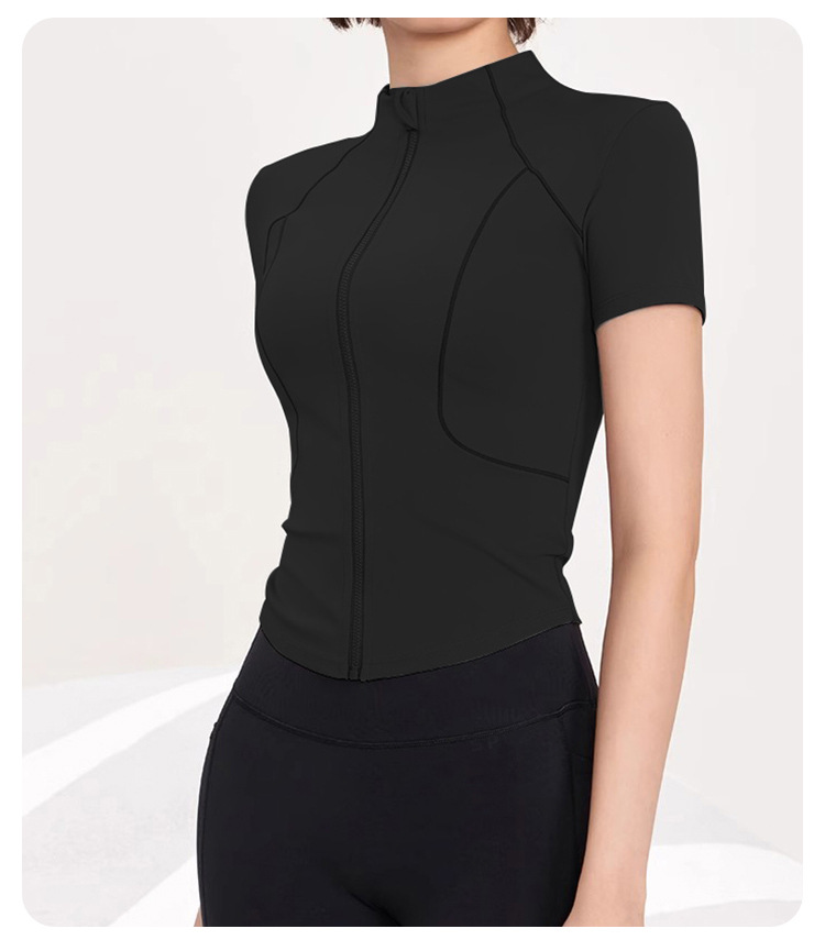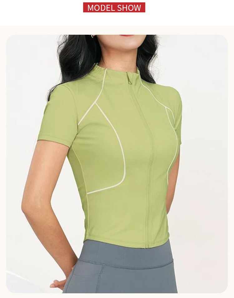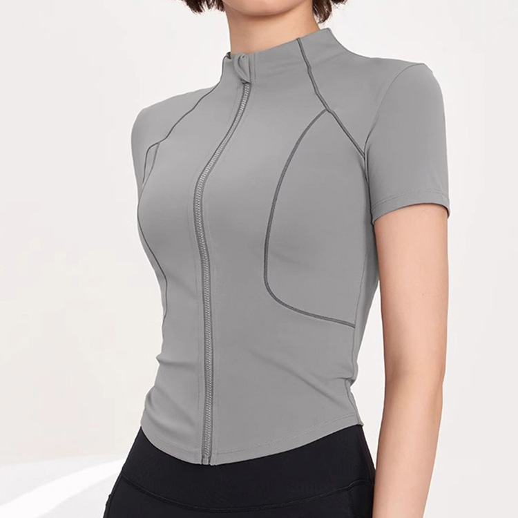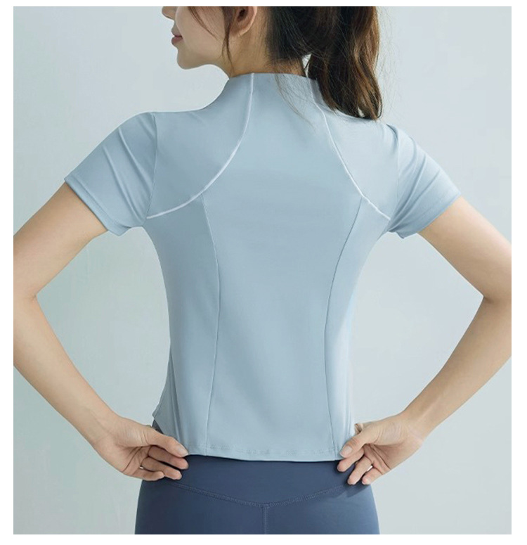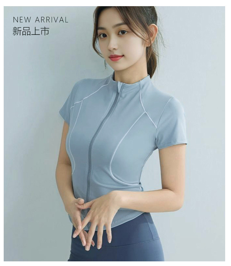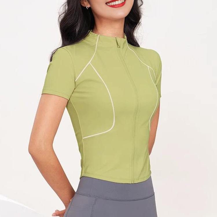 벌거 벗은 반팔 티셔츠 지퍼 피트니스 의류 여성 승마 의류 여름 야외 스포츠 요가 필라테스 훈련 탑