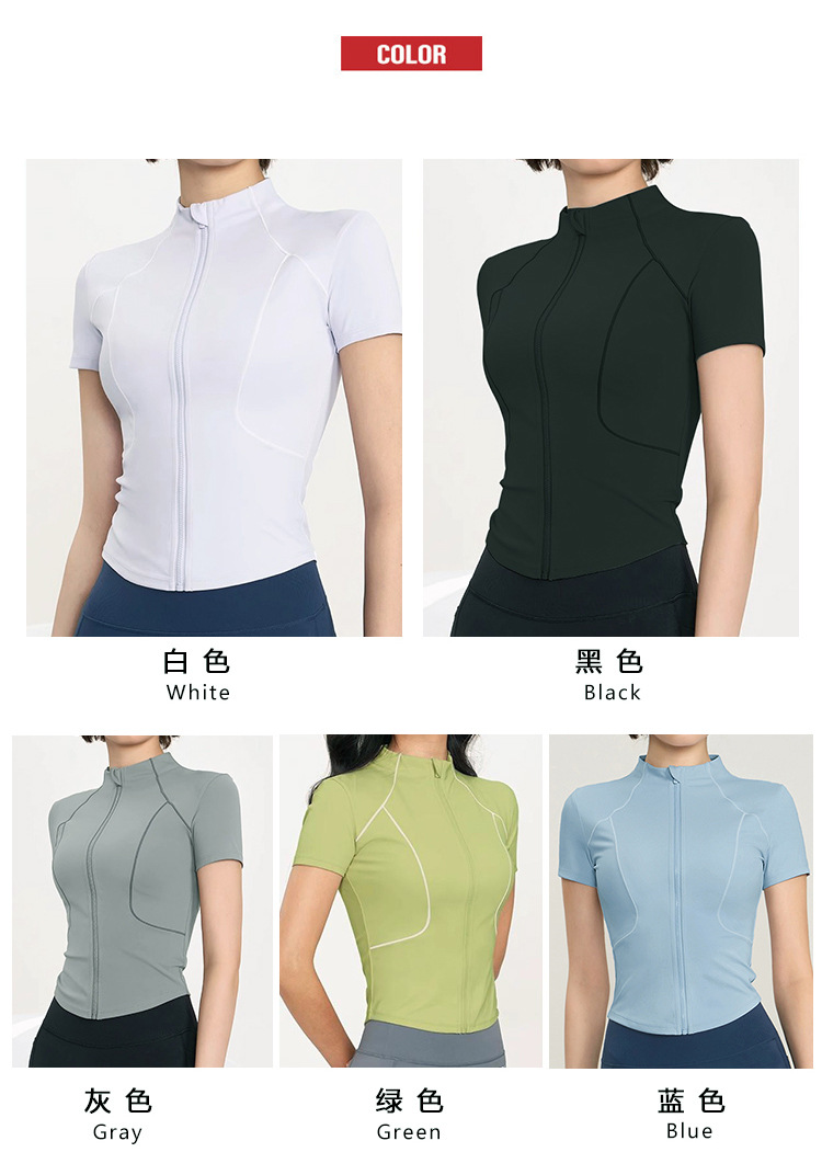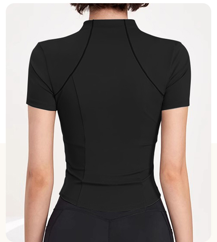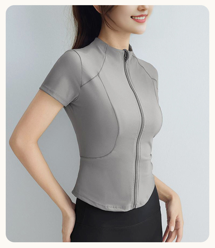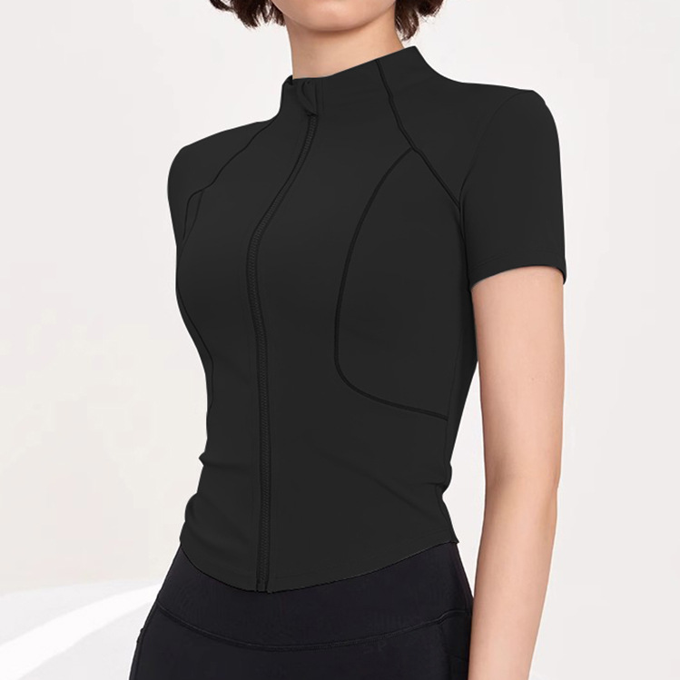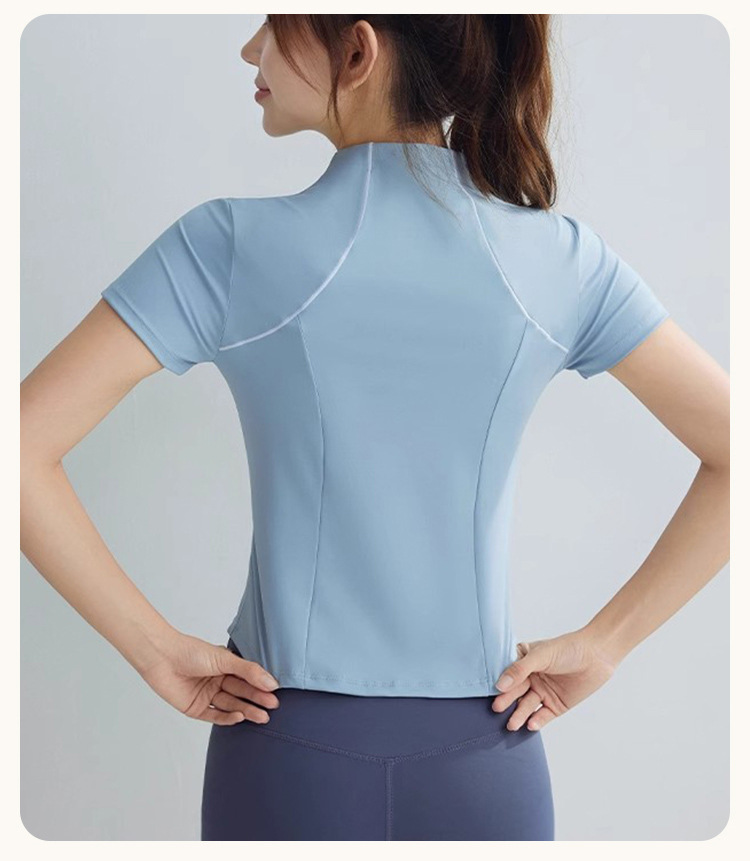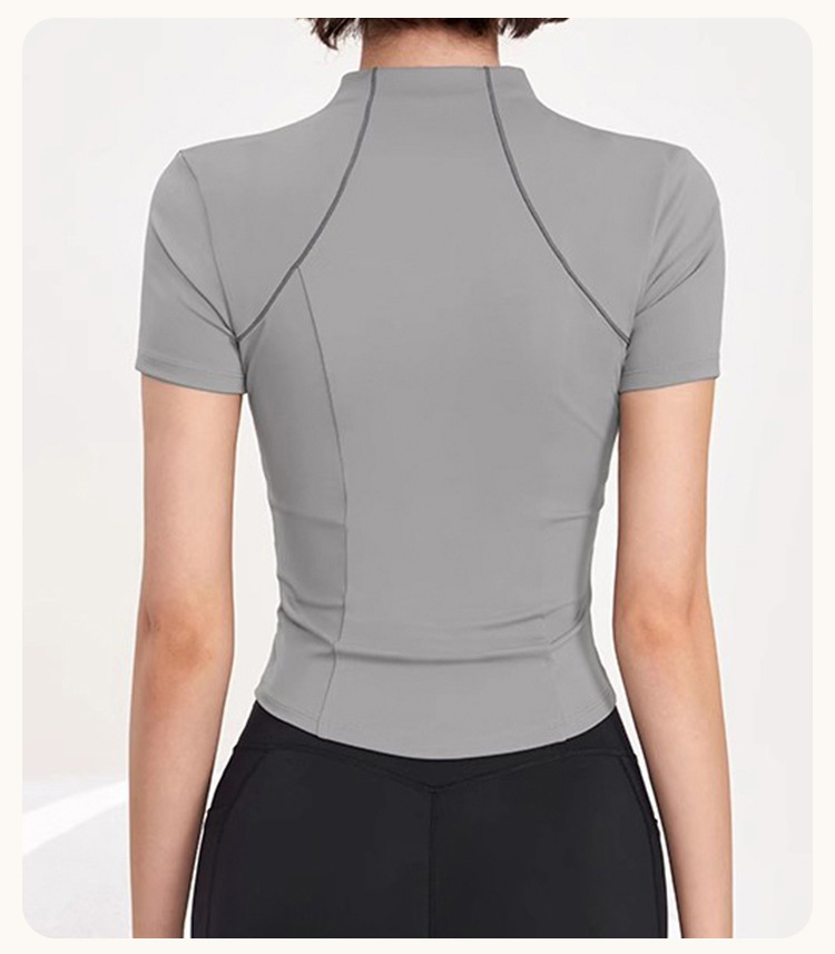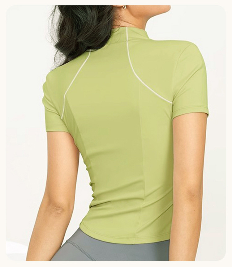벌거 벗은 반팔 티셔츠 지퍼 피트니스 의류 여성 승마 의류 여름 야외 스포츠 요가 필라테스 훈련 탑
