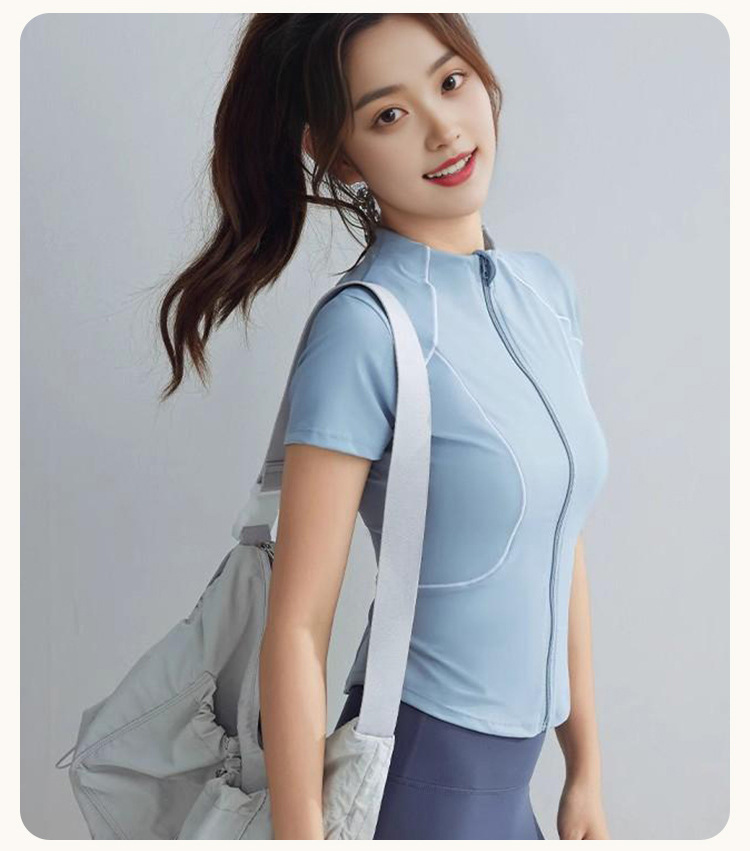 벌거 벗은 반팔 티셔츠 지퍼 피트니스 의류 여성 승마 의류 여름 야외 스포츠 요가 필라테스 훈련 탑스토어 가기