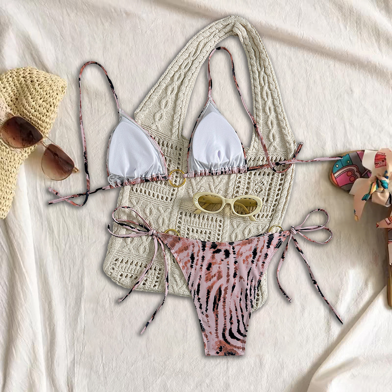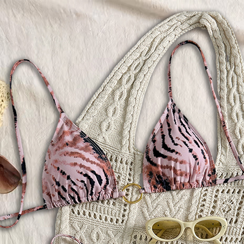 새로운 유럽과 미국의 비키니 여성 섹시한 스플릿 수영복 프린트 푸시 업 3 점 비키니 여성용 고급 수영복