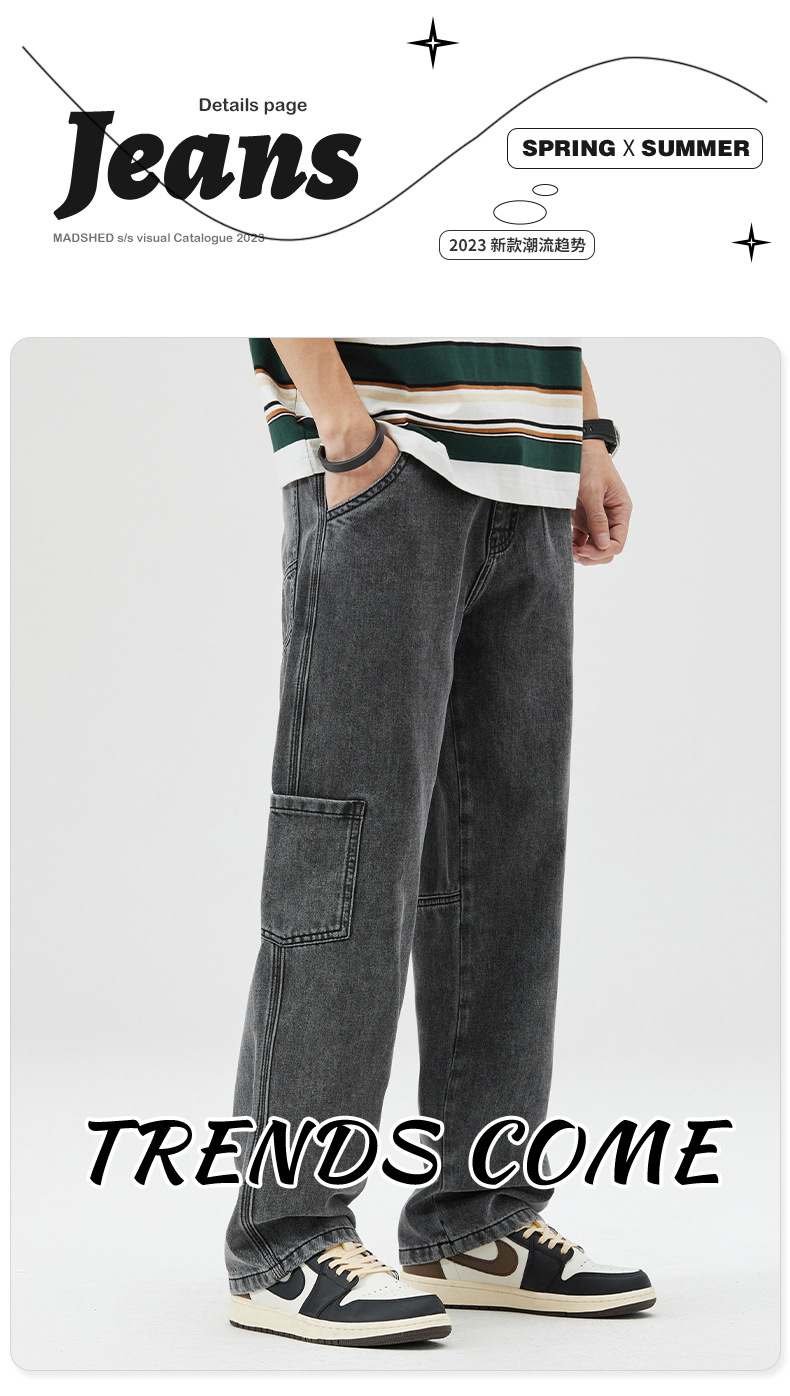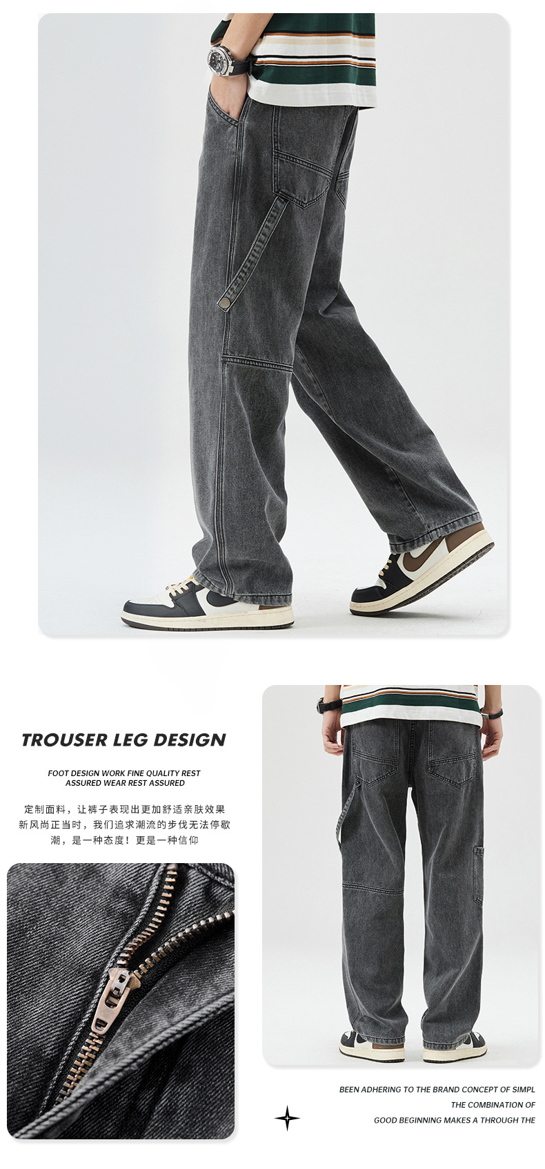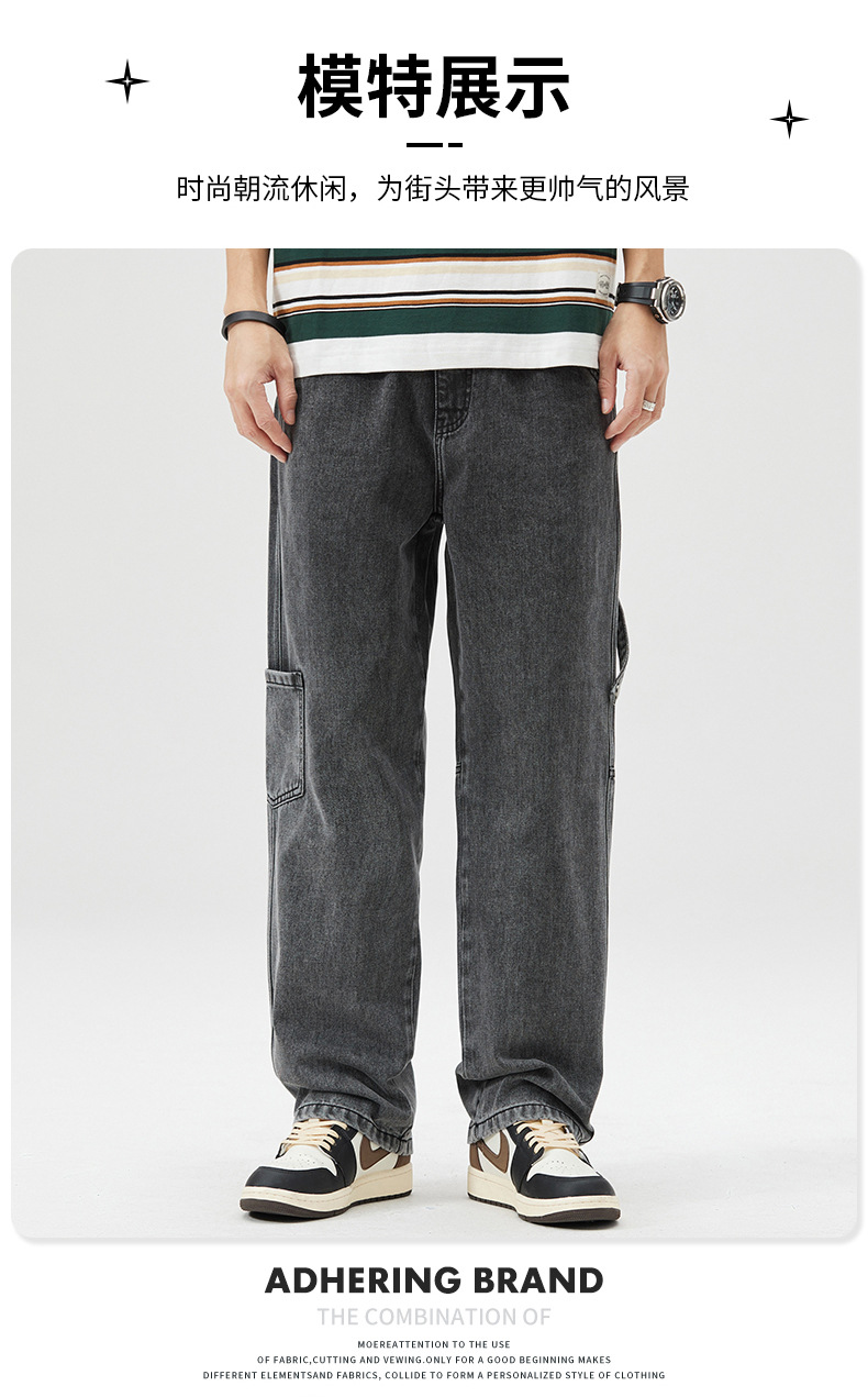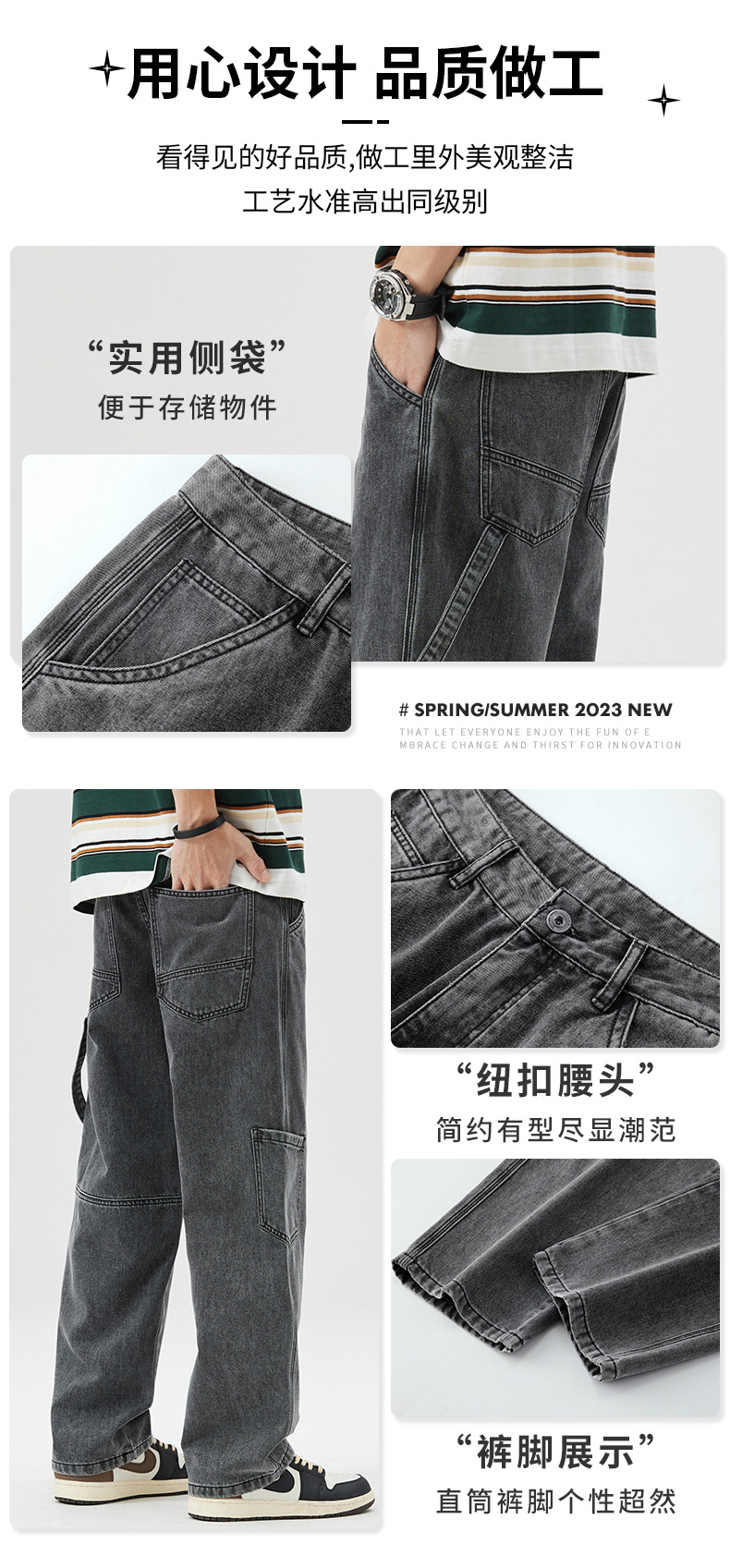 봄 여름 아메리칸 스모크 그레이 청바지 남성용 루즈한 하이 스트레이트 팬츠 트렌디 브랜드 다용도 캐주얼 와이드 팬츠스토어 가기