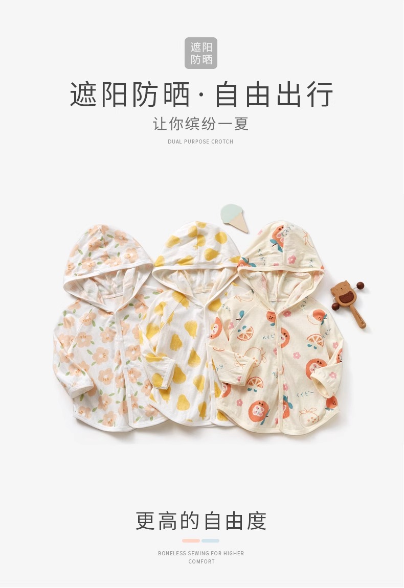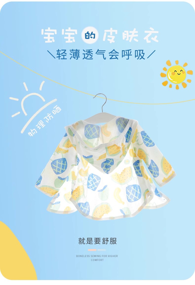 Jing Qi 아기 선 스크린 옷 여름 초박형 베이비 코튼 재킷 소년 에어컨 셔츠 소녀 카디건 안티 모기 의류스토어 가기