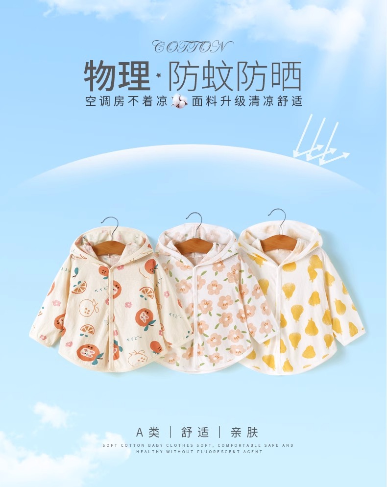 Jing Qi 아기 선 스크린 옷 여름 초박형 베이비 코튼 재킷 소년 에어컨 셔츠 소녀 카디건 안티 모기 의류