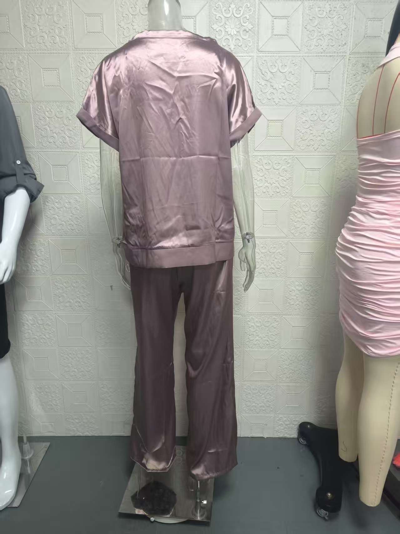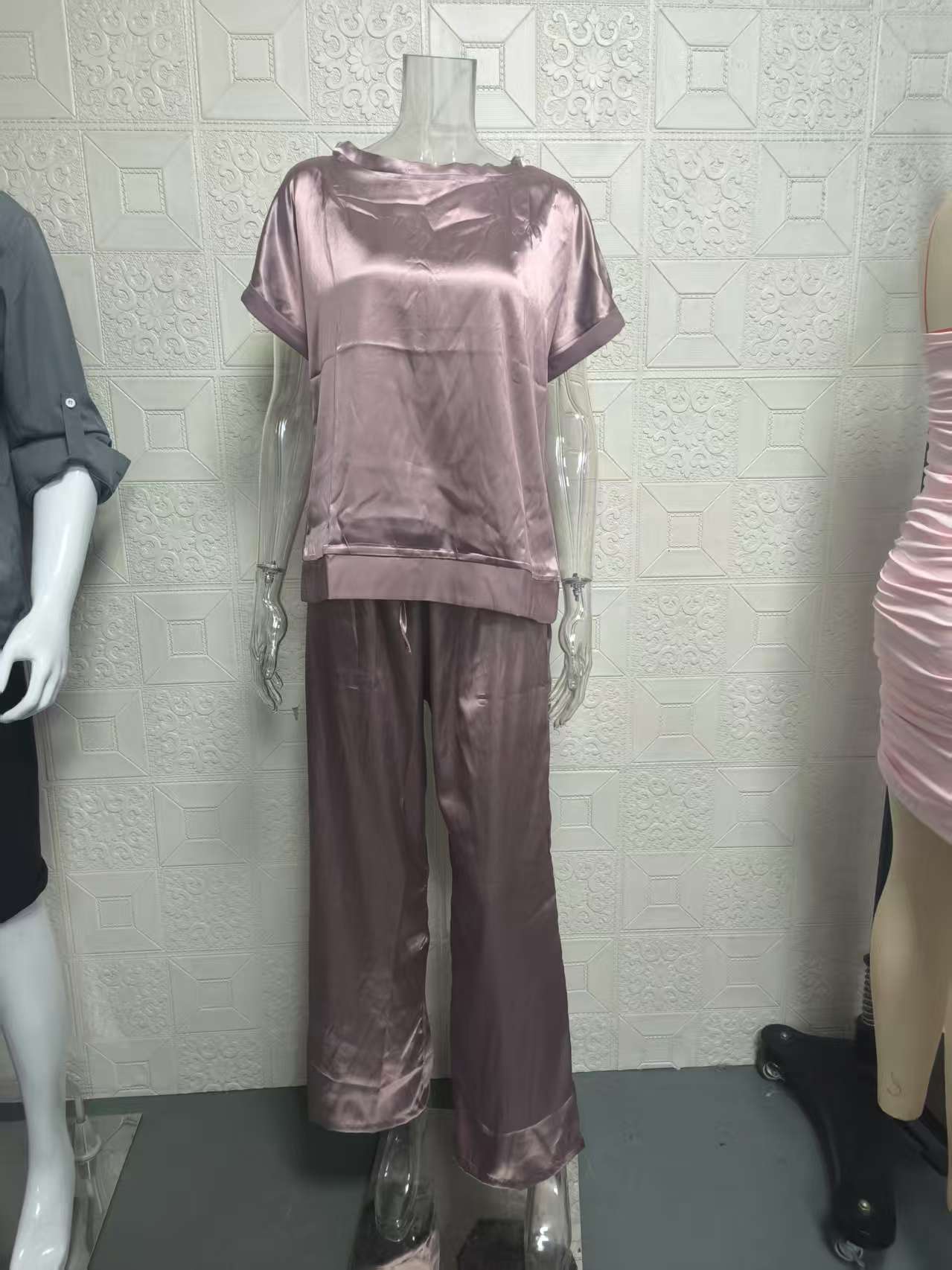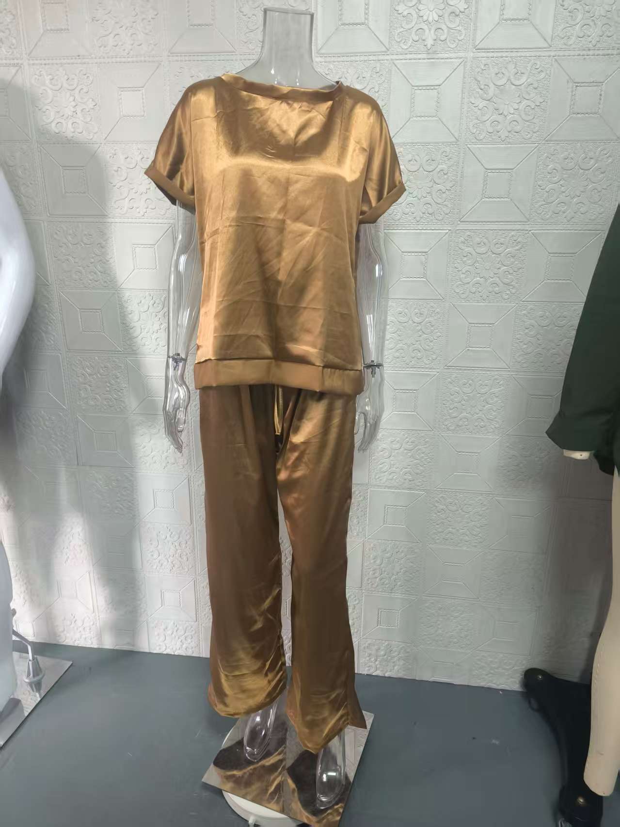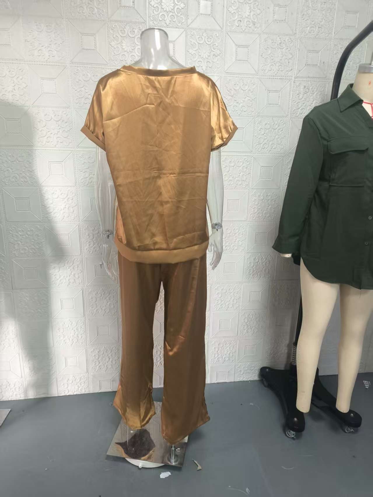 봄과 여름 2025 새로운 국경 대외 무역 아마존 독립 역 트렌드 느슨한 셔츠 넓은 다리 바지 캐주얼 세트스토어 가기
