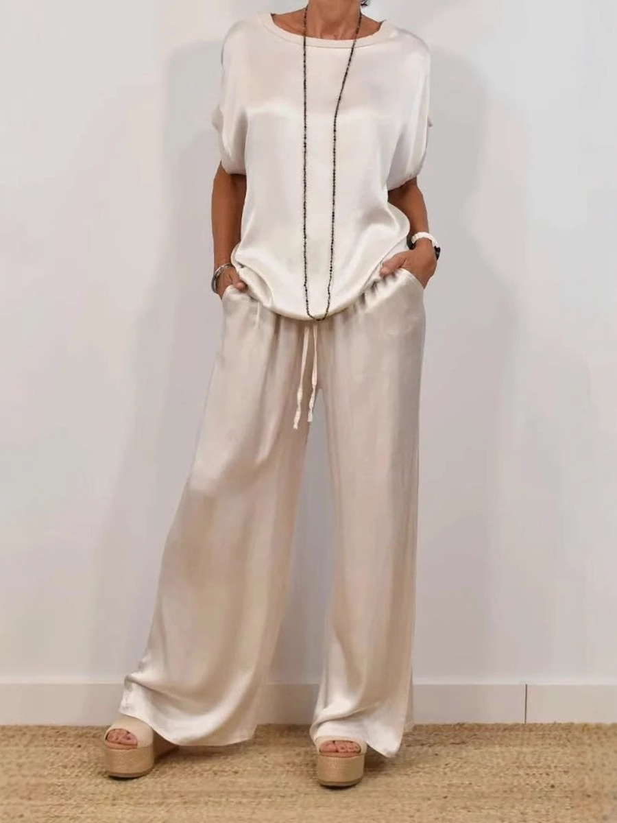 봄과 여름 2025 새로운 국경 대외 무역 아마존 독립 역 트렌드 느슨한 셔츠 넓은 다리 바지 캐주얼 세트