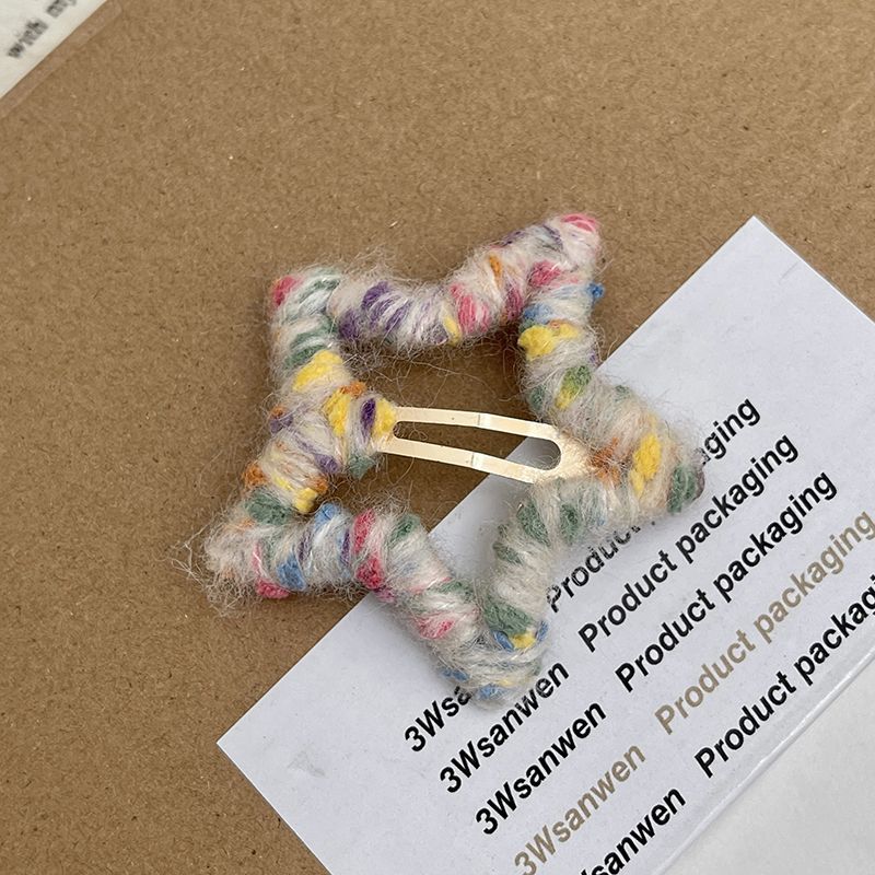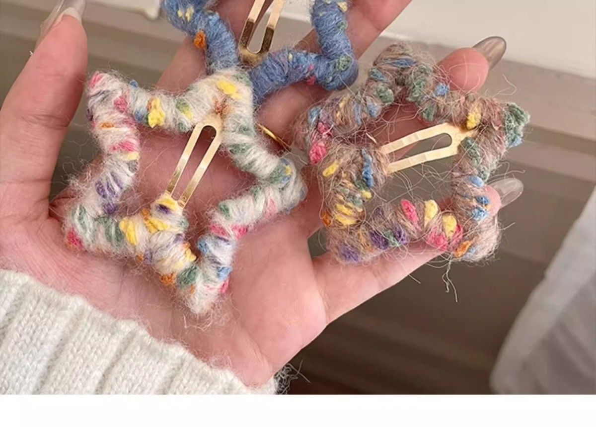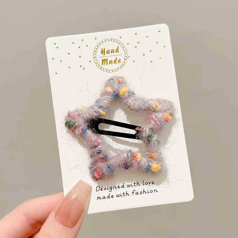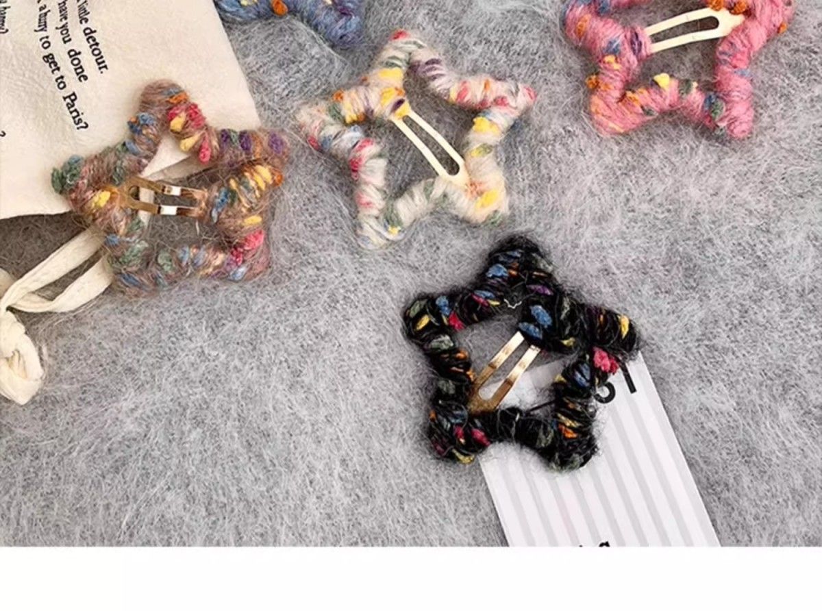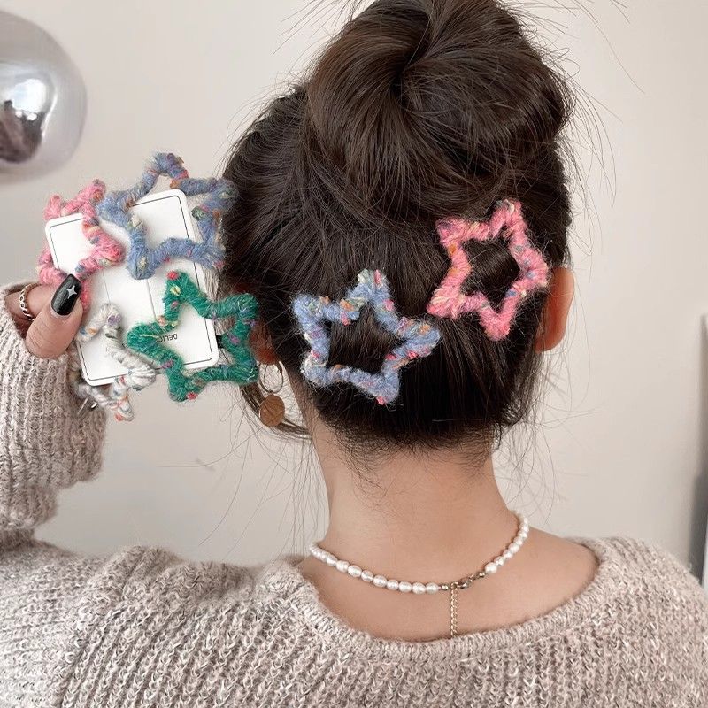 로맨틱한 한정판~ 핸드메이드 오각별 울 머리핀 가을겨울 이마 앞머리 클립 사이드 비비 헤어핀 인스토어 가기