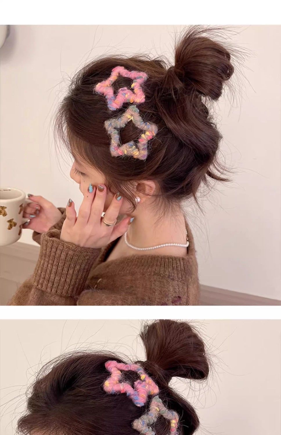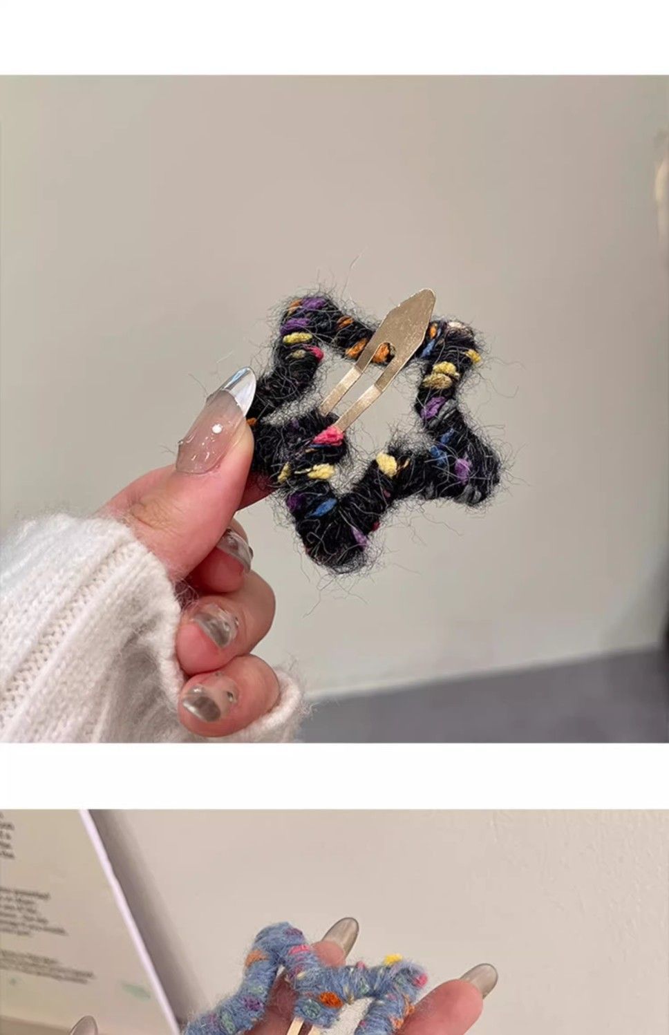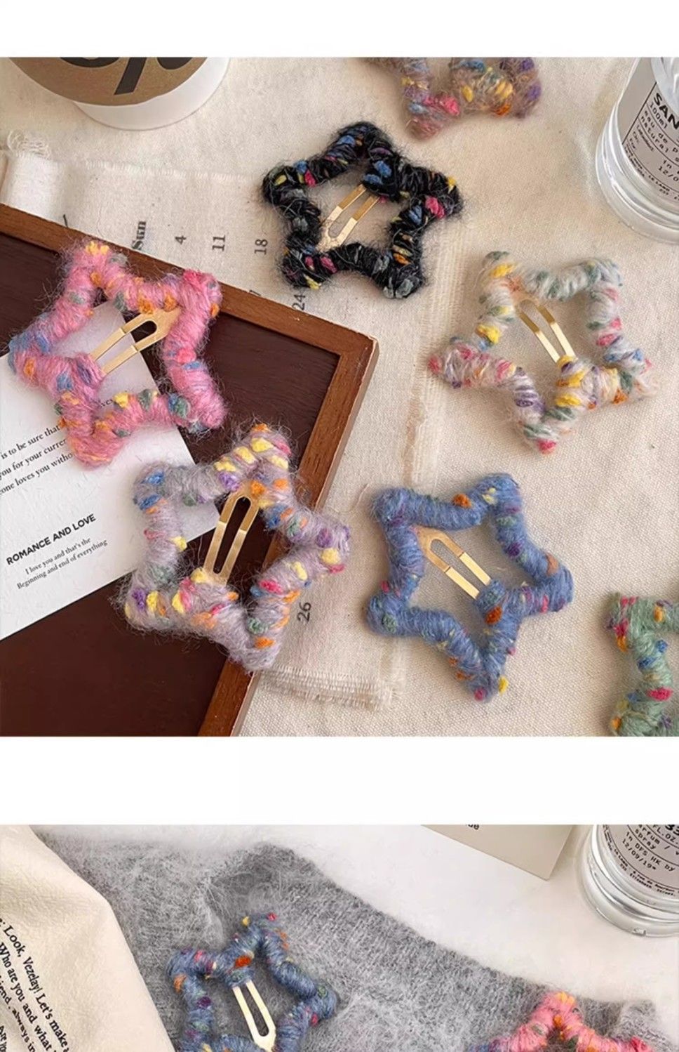 로맨틱한 한정판~ 핸드메이드 오각별 울 머리핀 가을겨울 이마 앞머리 클립 사이드 비비 헤어핀 인스토어 가기