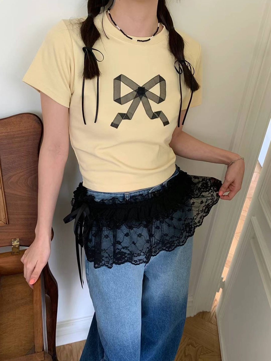 동대문 2025 봄 여름 스커트 신상 헤비듀티 레이스 엣지 숏 힙 커튼 앞치마 여성 트렌디