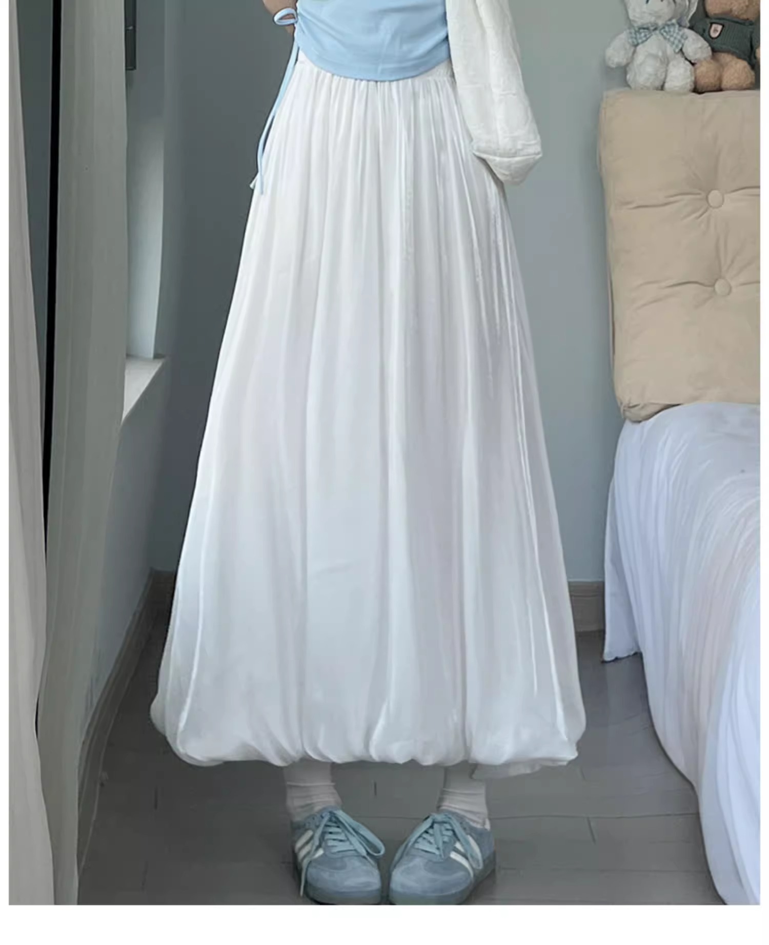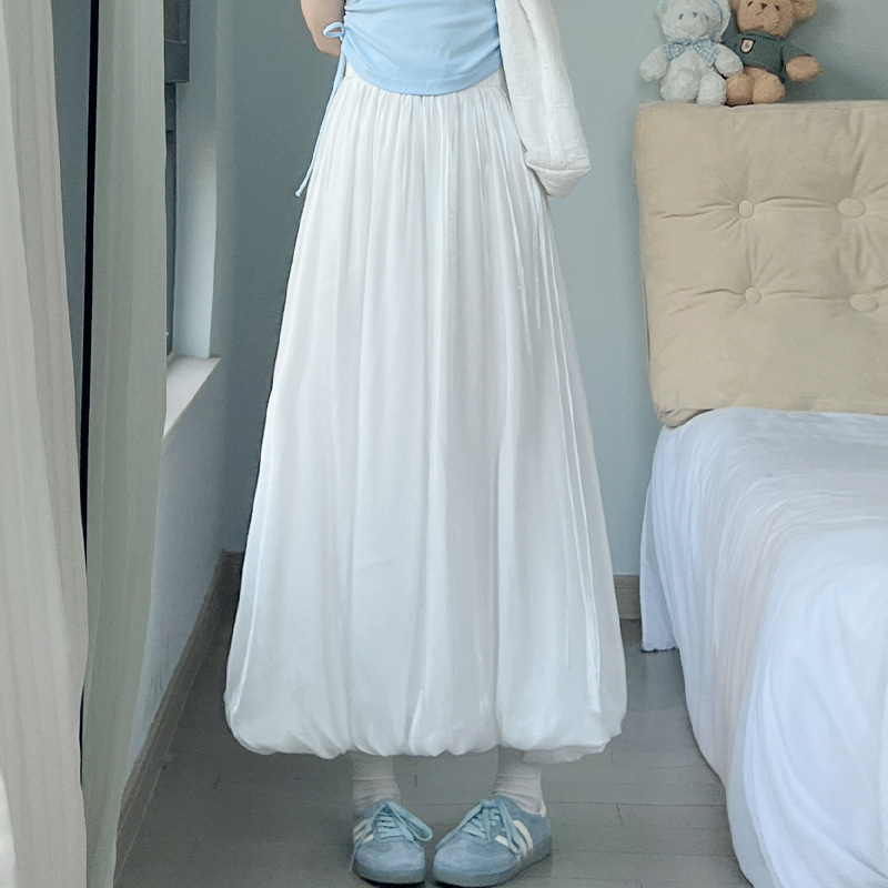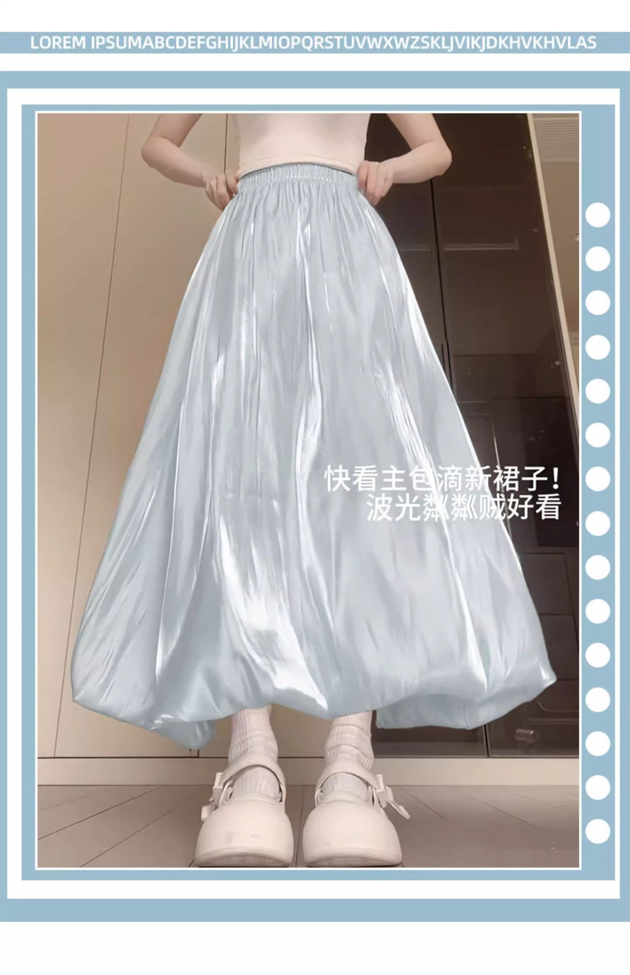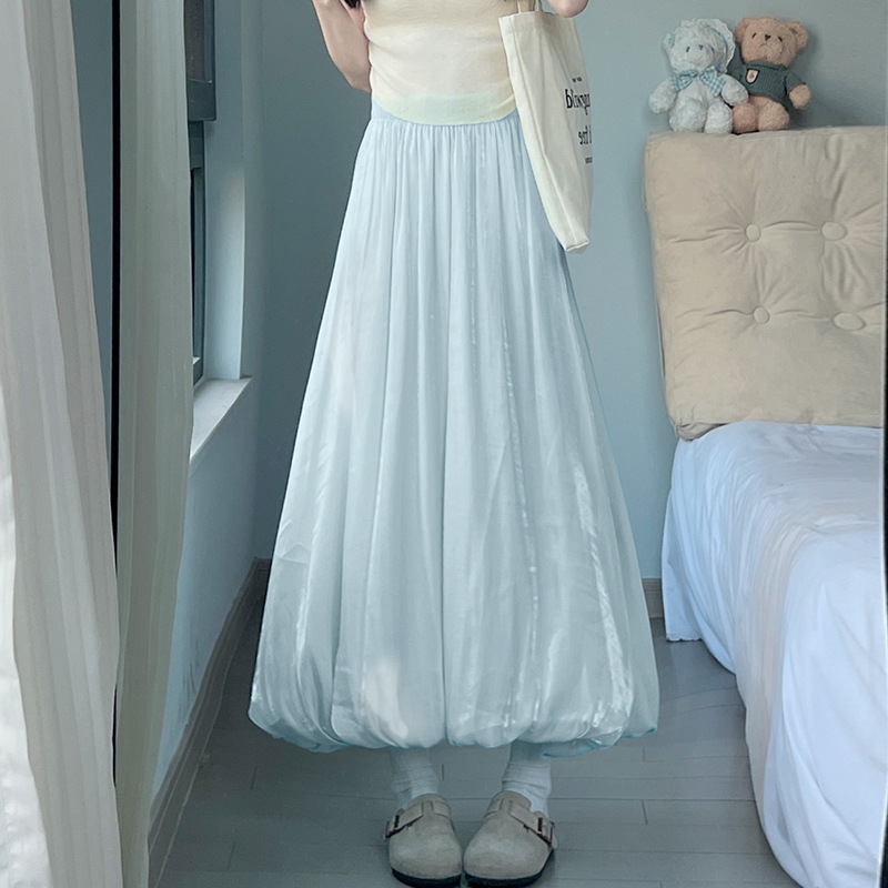 푸른 유선형 꽃 원피스 여자 2025 년 여름 새로운 높은 허리 A 라인 슬리밍 유선형 거즈 스커트 헵번 스타일 스커트스토어 가기