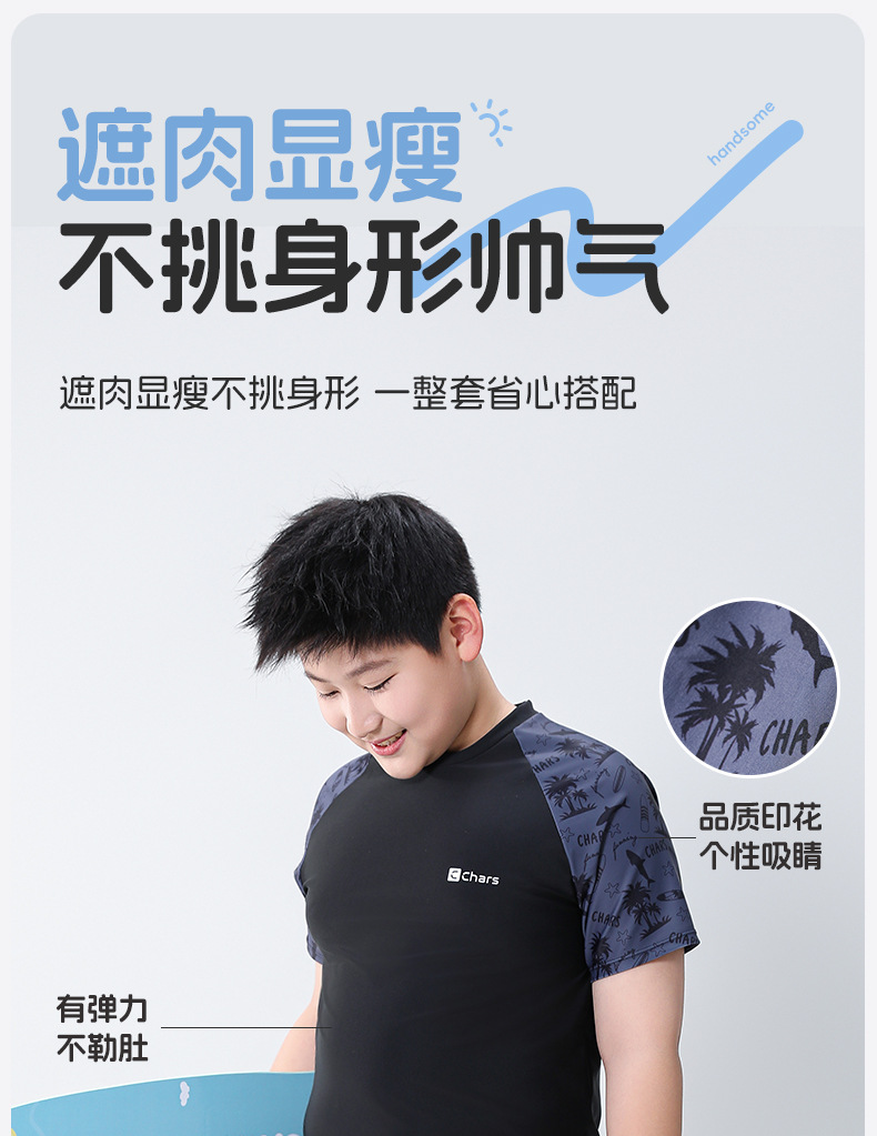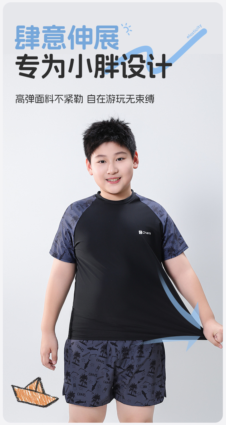 CHARS 어린이 수영복 통통한 키즈 중 · 빅 키즈 2025 수영 B051A 플러스 사이즈 새로운 분할 퀵 드라이 수영복 소년