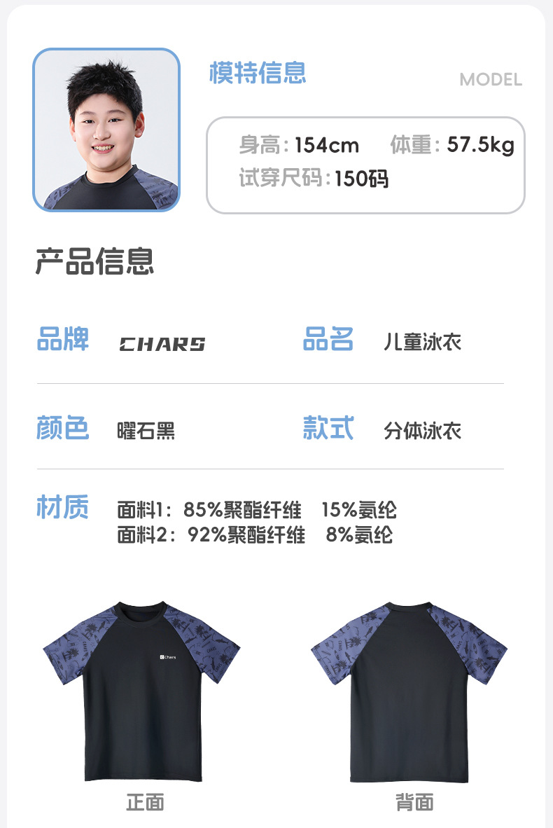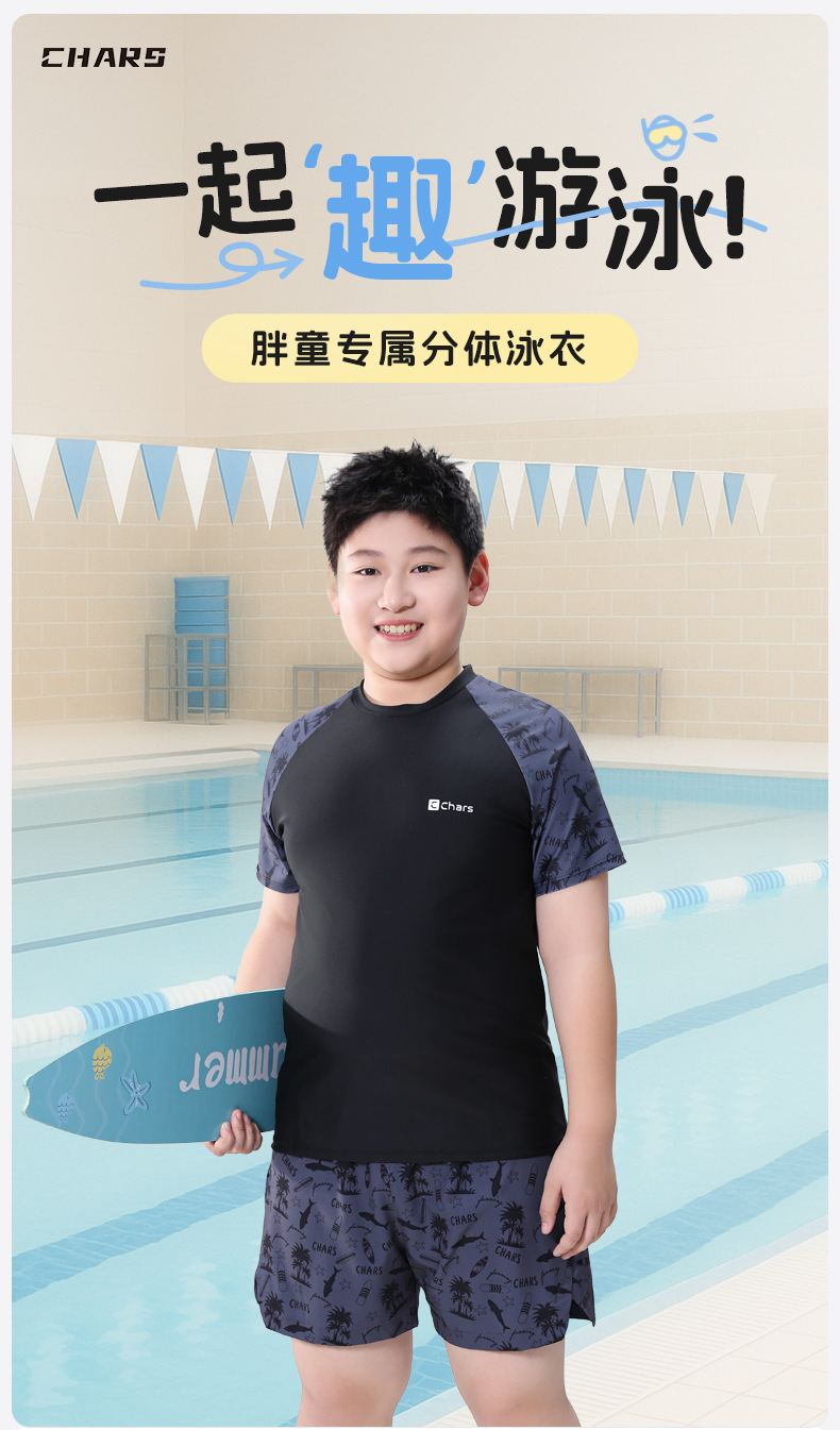 CHARS 어린이 수영복 통통한 키즈 중 · 빅 키즈 2025 수영 B051A 플러스 사이즈 새로운 분할 퀵 드라이 수영복 소년스토어 가기