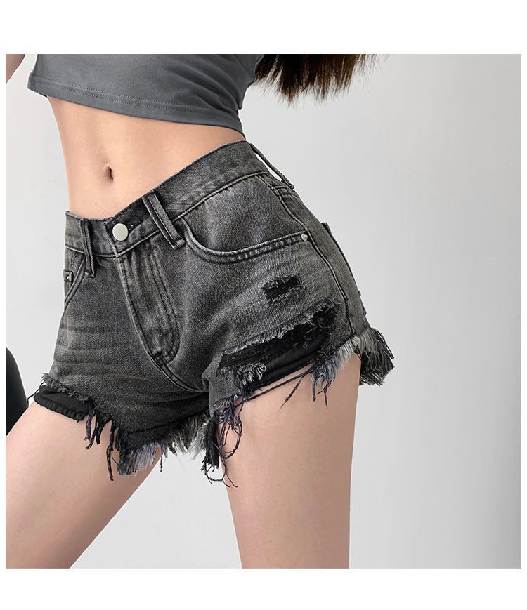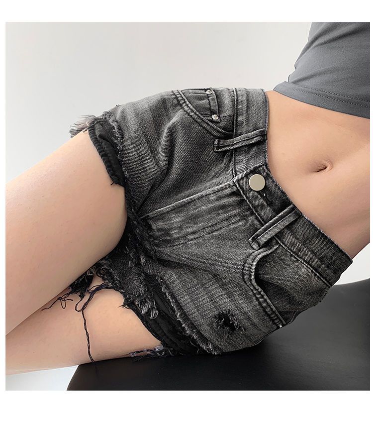 봄과 여름 빈티지 불규칙한 데님 반바지 여성용 얇은 핫 팬츠 높은 허리 슬림 핏 A 자형 모직 와이드 레그 핫 팬츠스토어 가기