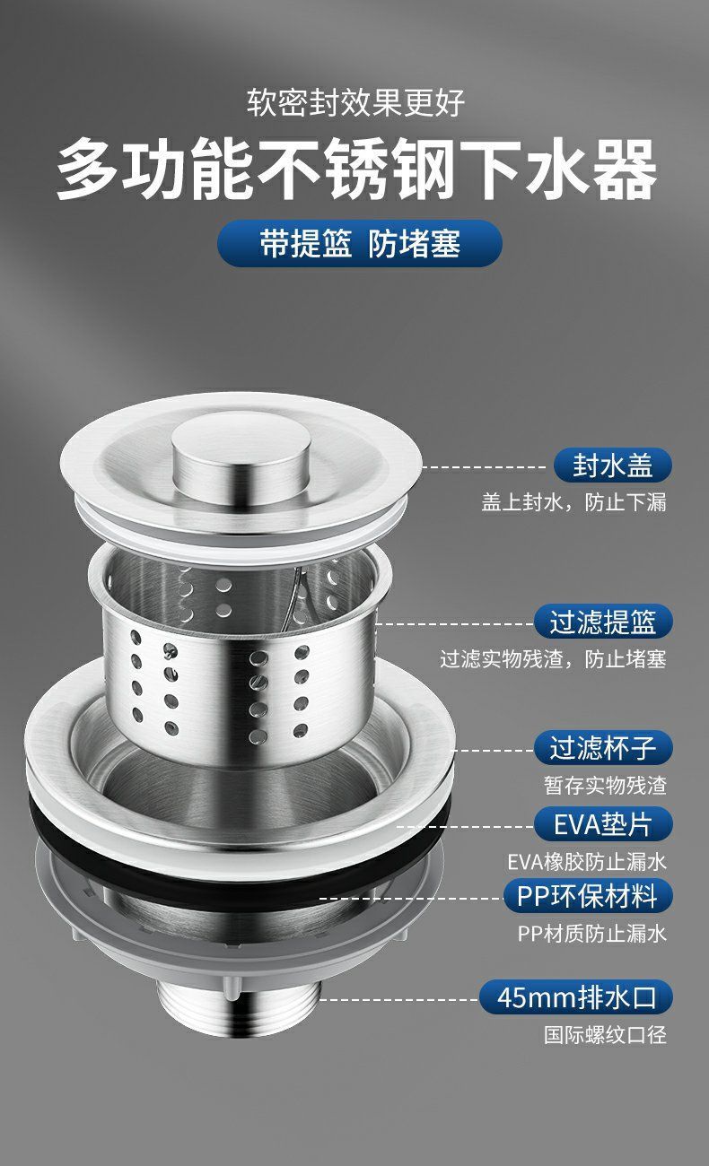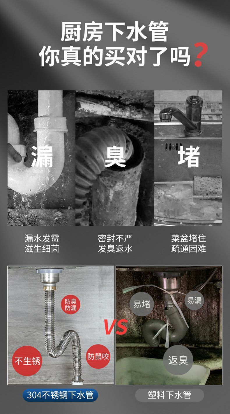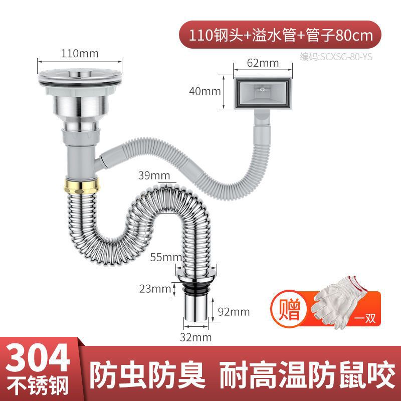 주방 304 스테인레스 스틸 야채 분지 하수관 액세서리 싱크대 배수 탈취제 배수관 세트 공장스토어 가기