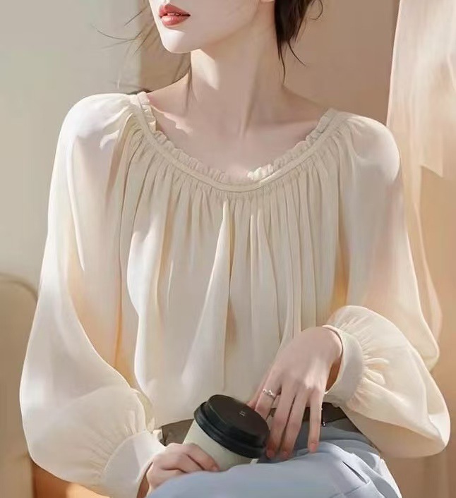 2025 이른 봄 새로운 간단한 올 매치 쉬폰 셔츠 랜턴 소매 핫 스타일 아름다운 쉬폰 우아한 긴 소매 탑스토어 가기