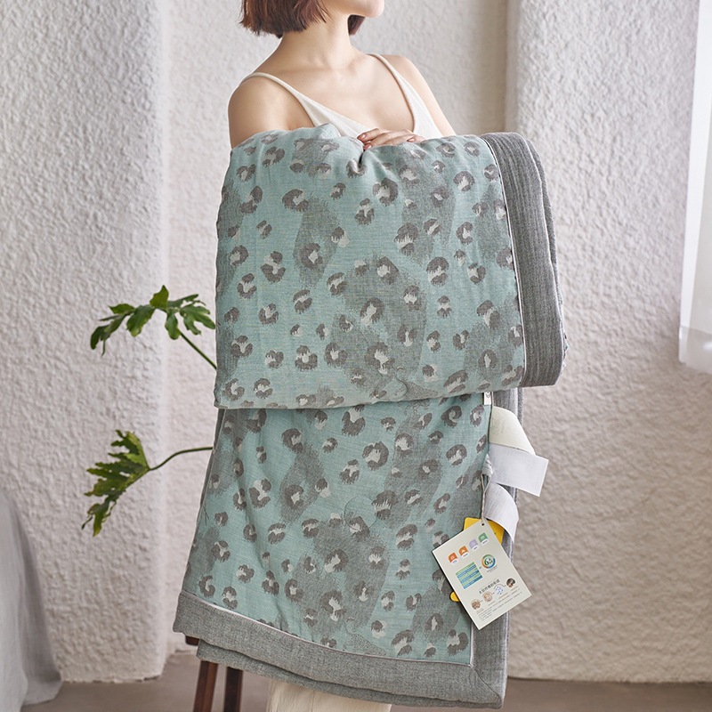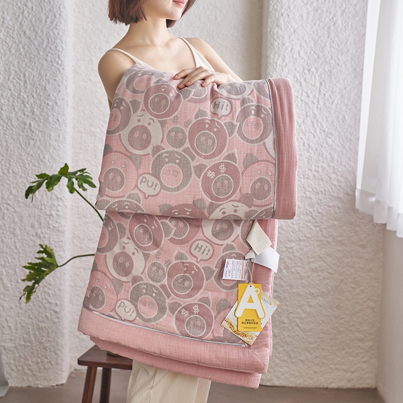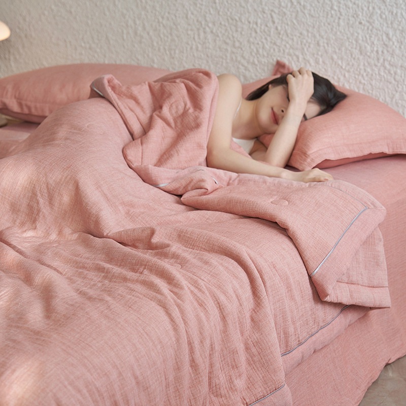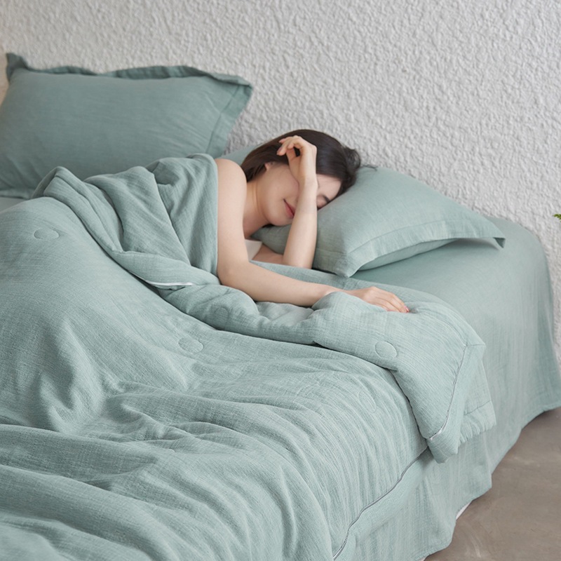 클래스 A 면사 염색 자카드 더블 레이어 원사 대두 여름 퀼트 4 피스 코튼 여름 시원한 이불 싱글 더블 에어컨 커버 퀼트