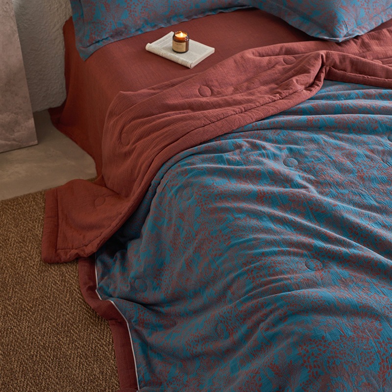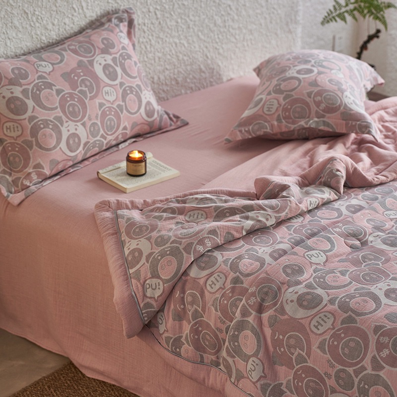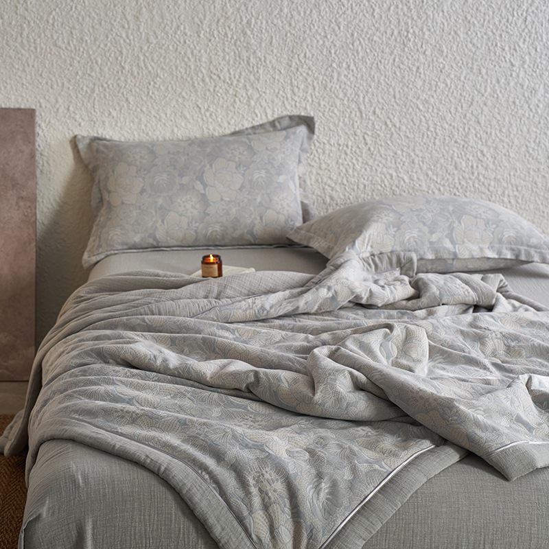 클래스 A 면사 염색 자카드 더블 레이어 원사 대두 여름 퀼트 4 피스 코튼 여름 시원한 이불 싱글 더블 에어컨 커버 퀼트스토어 가기