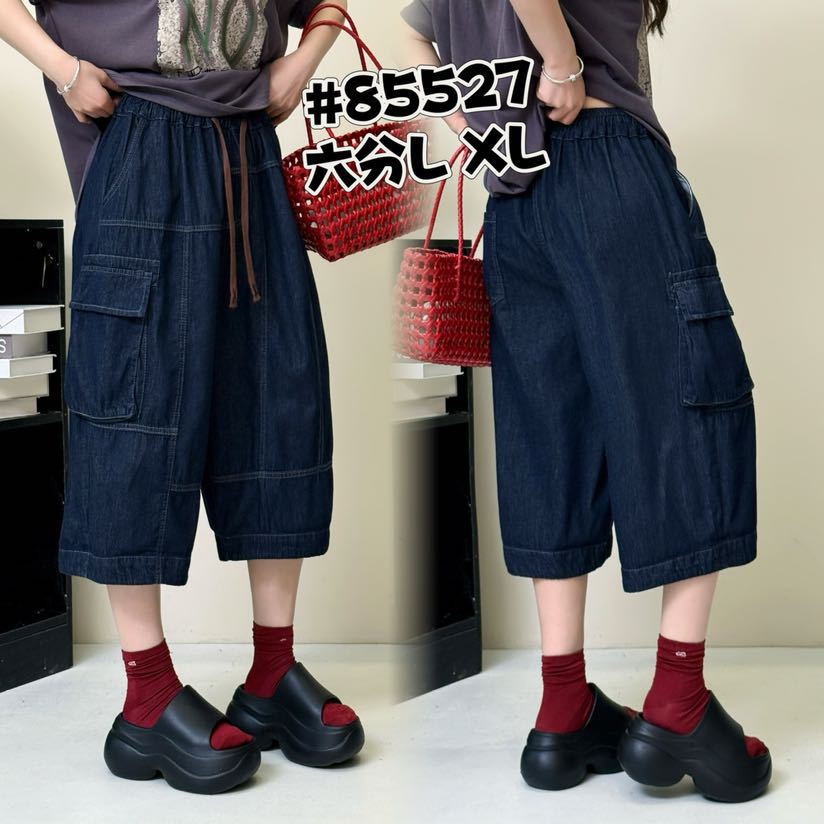 2025 여름 새로운 스티칭 바지 다리 탄성 허리 레이스 업 7 스트레이트 튜브 문학 중공업 패션 청바지 여성스토어 가기