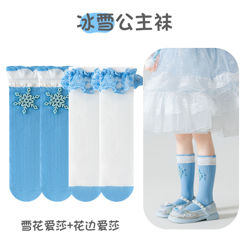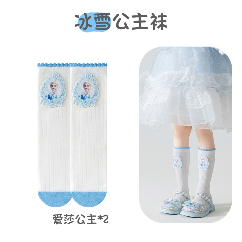 어린이 스타킹 여름 클래스 얇은 소녀 만화 얼음과 눈 아이샤 공주 통기성 메쉬 레이스 송아지 양말