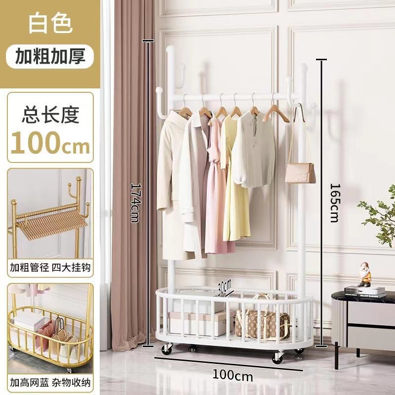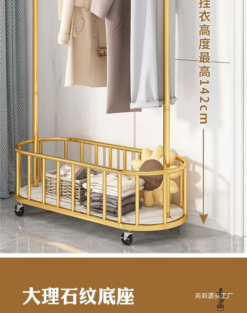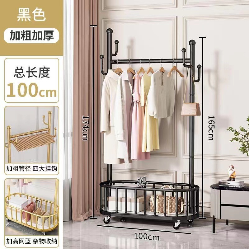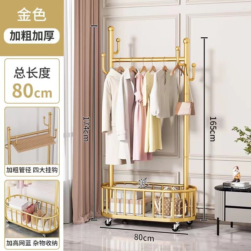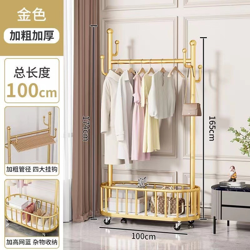 가벼운 고급 침실 옷걸이 가정용 옷걸이 바닥 서 바퀴 달린 이동식 실내 코트 랙 보관 간단한 옷 랙