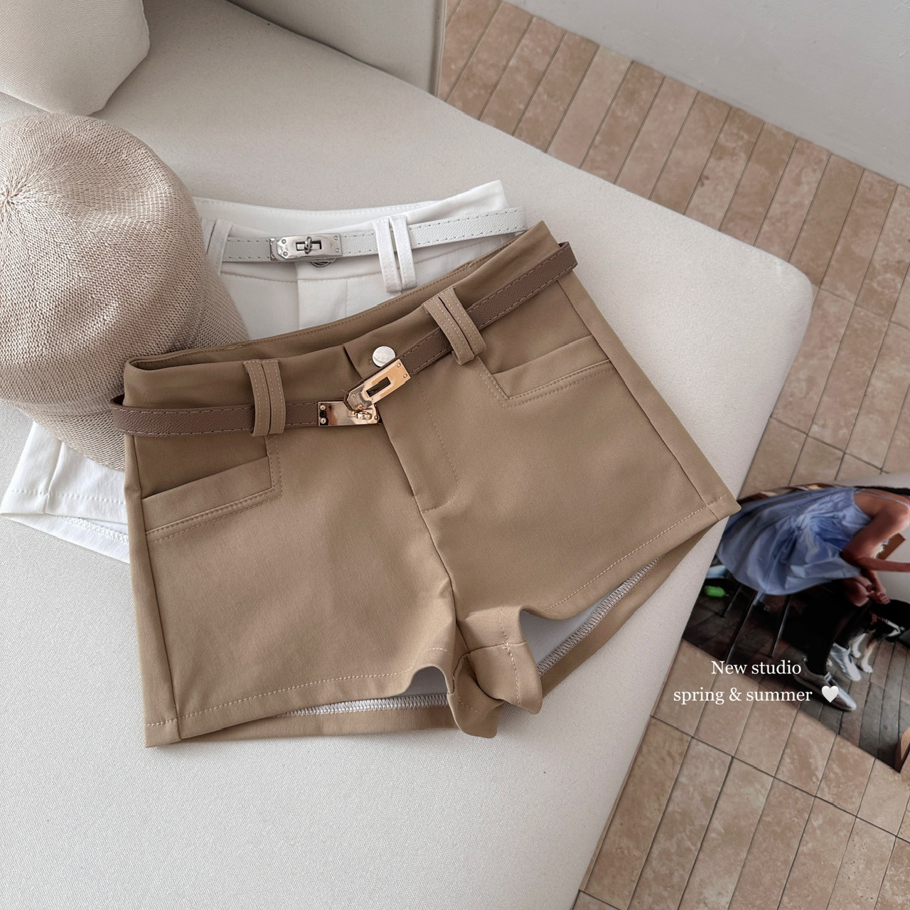2025 기본 다목적 벨트 반바지 여성용 봄과 여름 스파이스 소녀 센스 슬리밍 캐주얼 카키 핫 팬츠 벨트스토어 가기