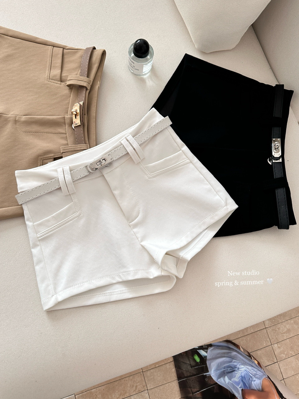 2025 기본 다목적 벨트 반바지 여성용 봄과 여름 스파이스 소녀 센스 슬리밍 캐주얼 카키 핫 팬츠 벨트