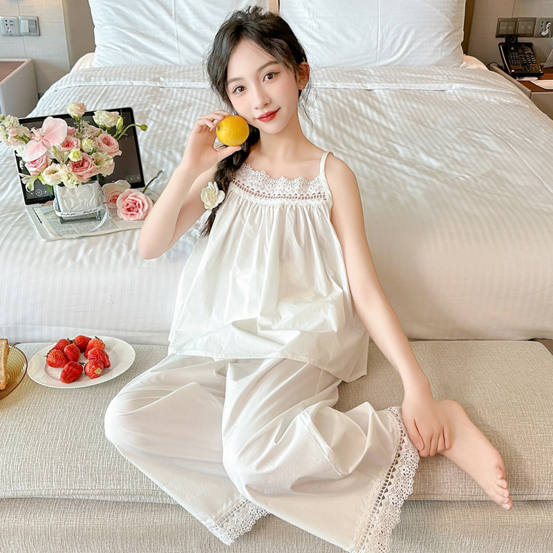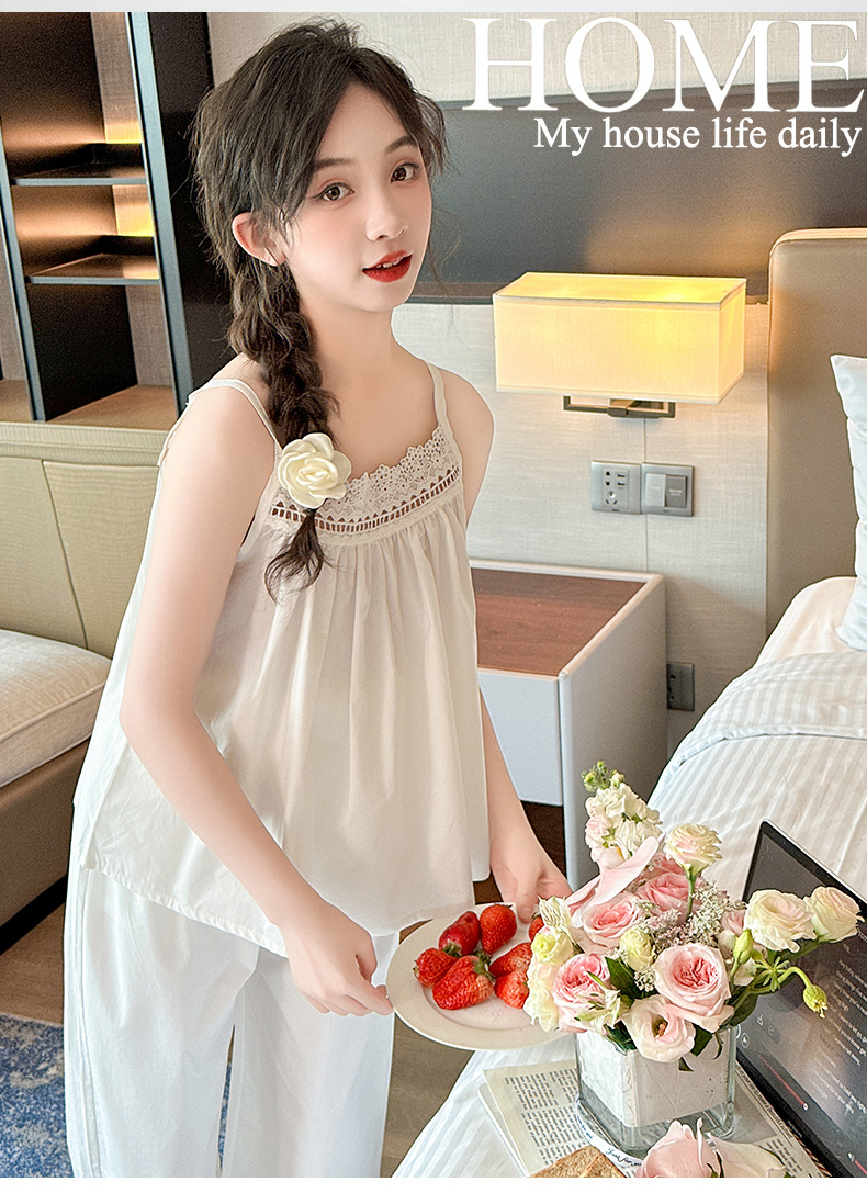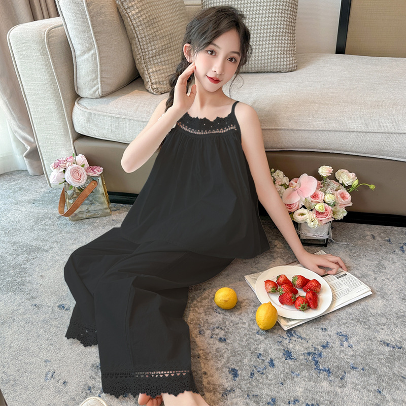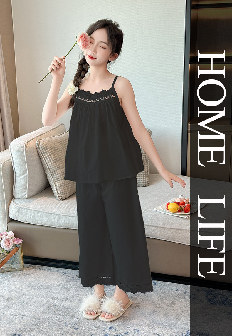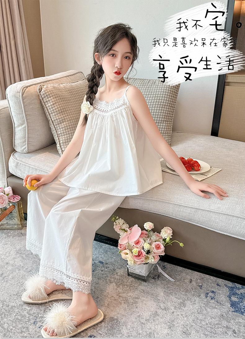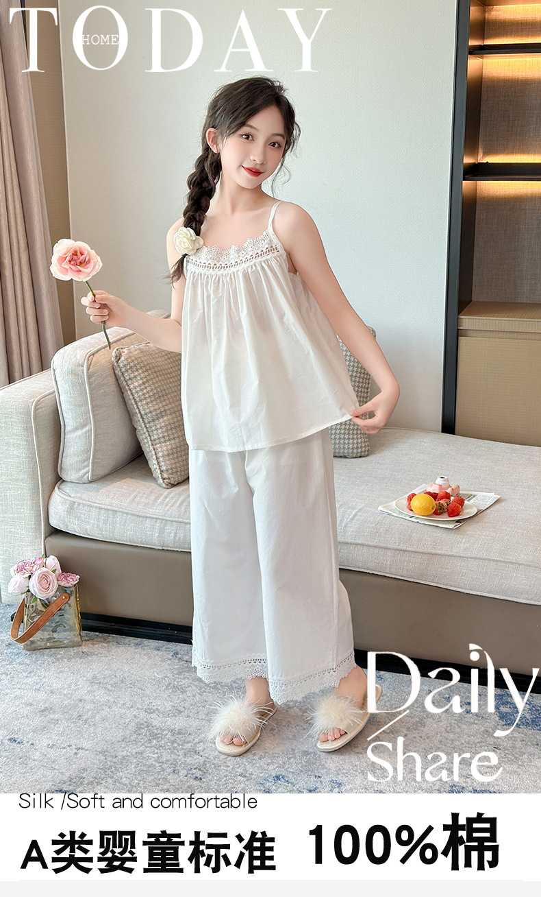 소녀 슬링 파자마 여름 2025 새로운 어린이 공주 스타일 홈 옷 레이스 엣지 걸스 스위트 파자마