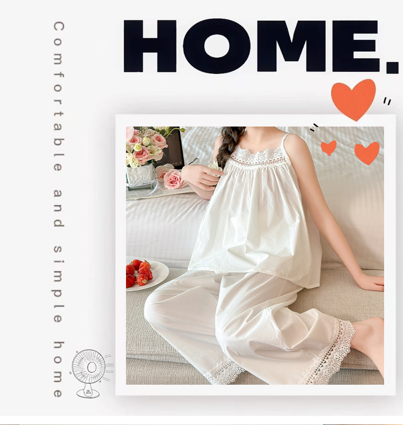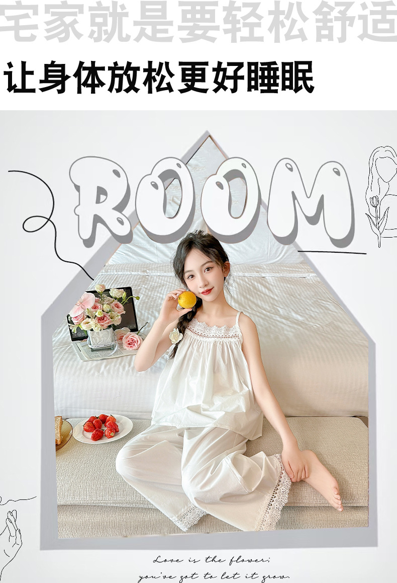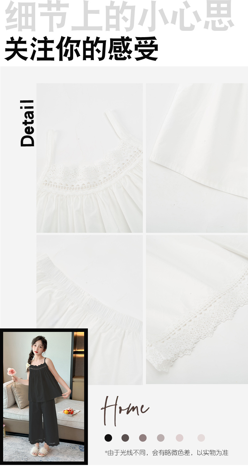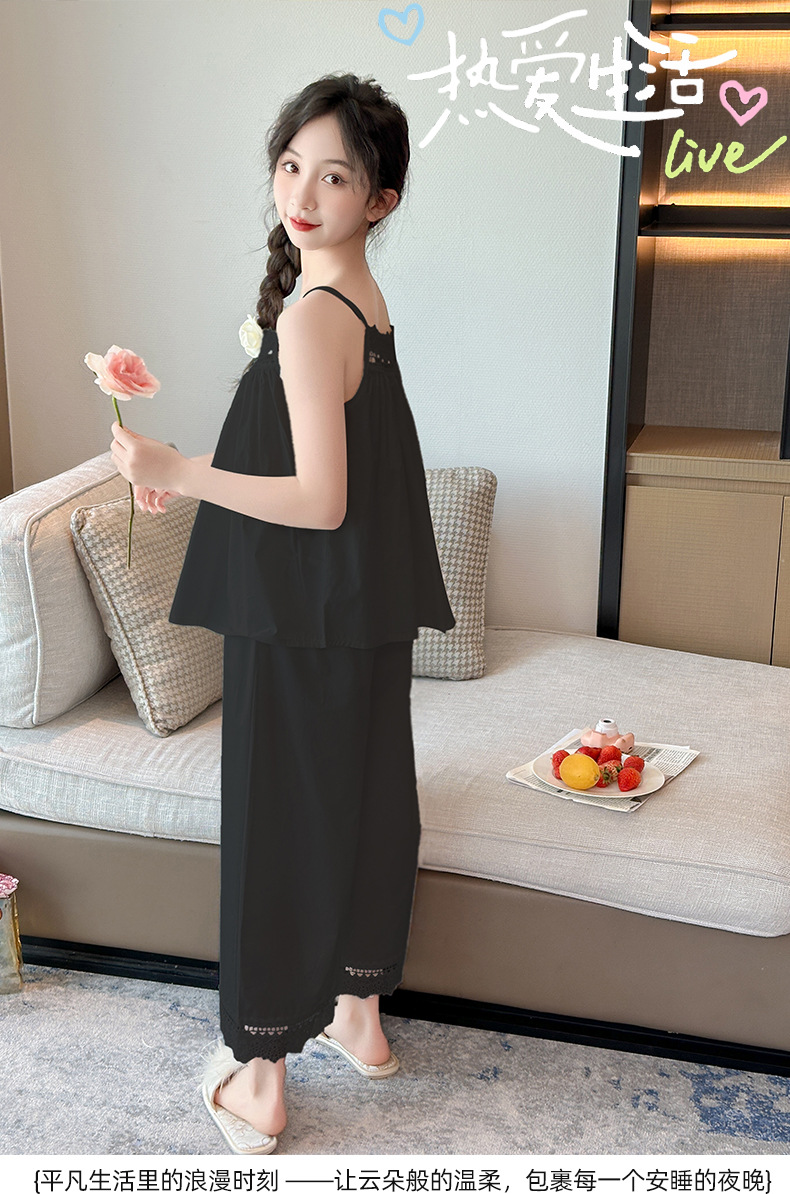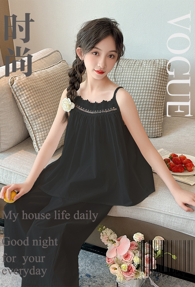 소녀 슬링 파자마 여름 2025 새로운 어린이 공주 스타일 홈 옷 레이스 엣지 걸스 스위트 파자마