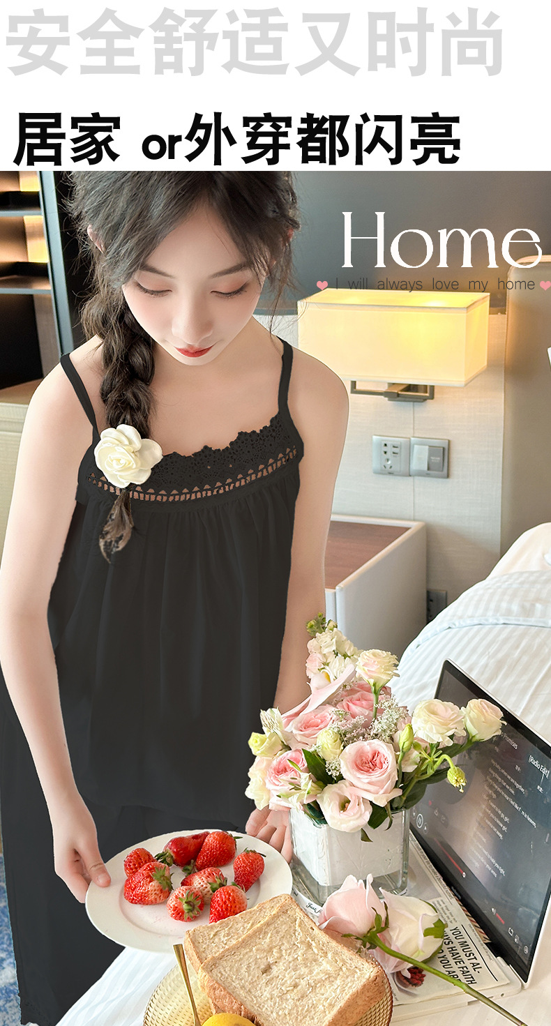소녀 슬링 파자마 여름 2025 새로운 어린이 공주 스타일 홈 옷 레이스 엣지 걸스 스위트 파자마스토어 가기