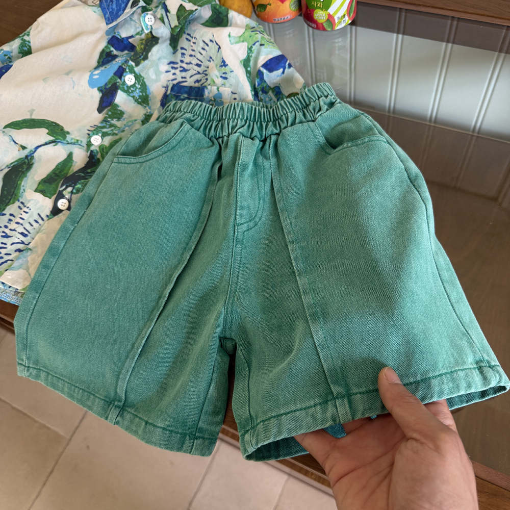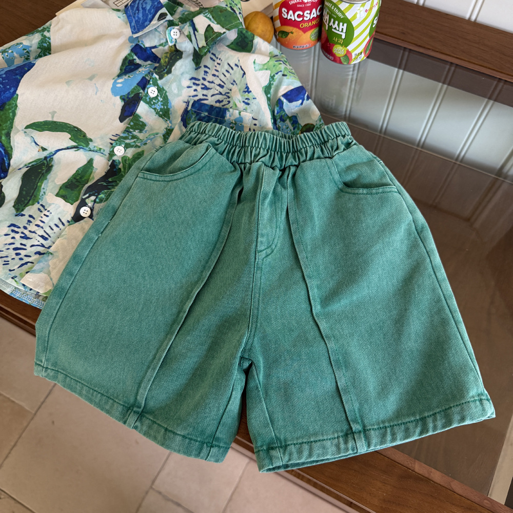 아동복 소년 여름 바지 반바지 2025 새로운 얇은 중대형 아동 청바지 여름 중간 바지 여름 유행