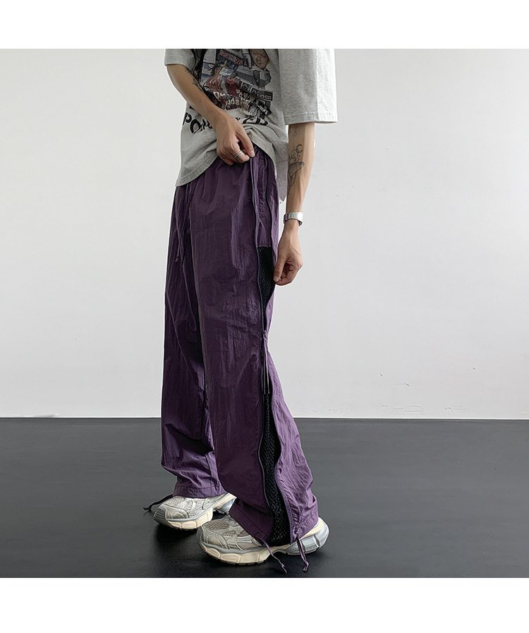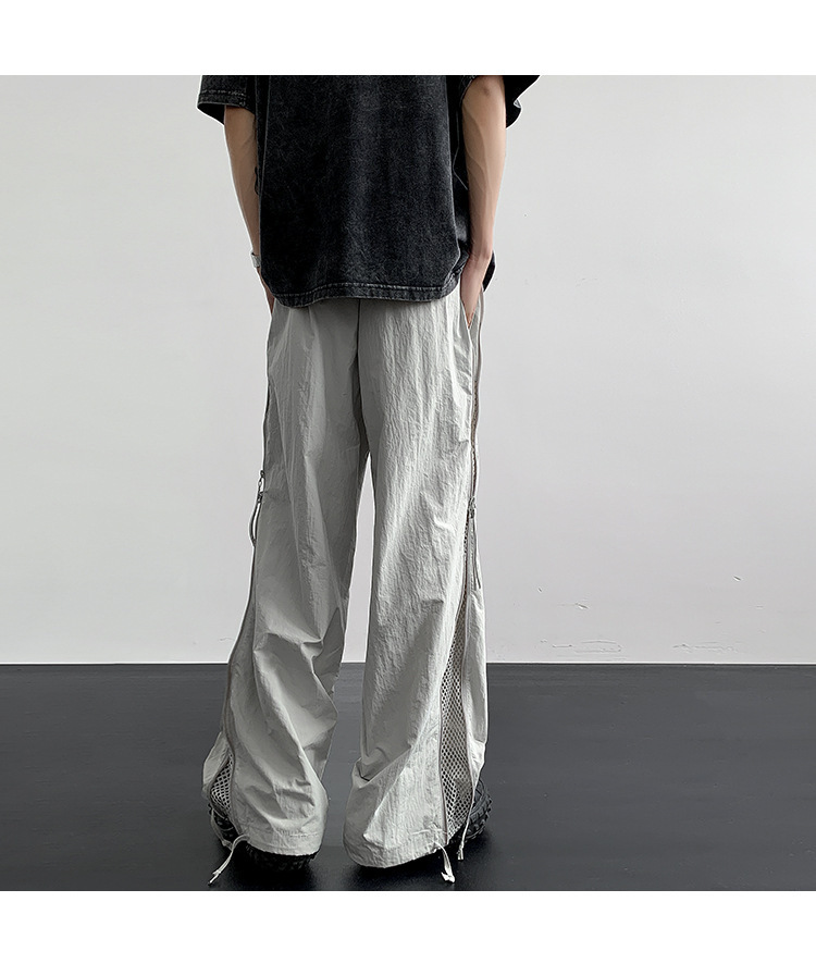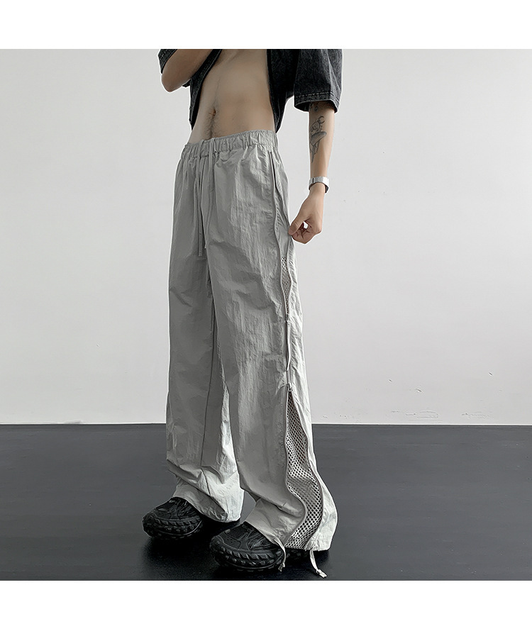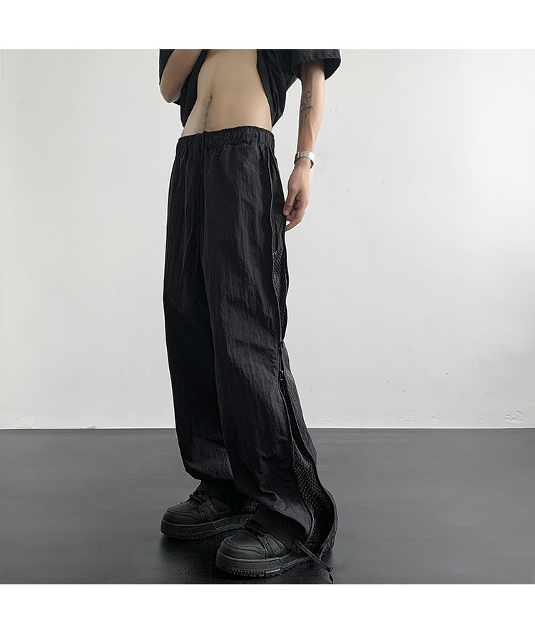 사이드 지퍼 메쉬 통기성 낙하산 기병대 바지 남성 여름 얇은 미국 나일론 속건성 작업복 바지 남성용 와이드 레그