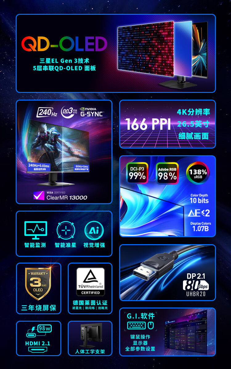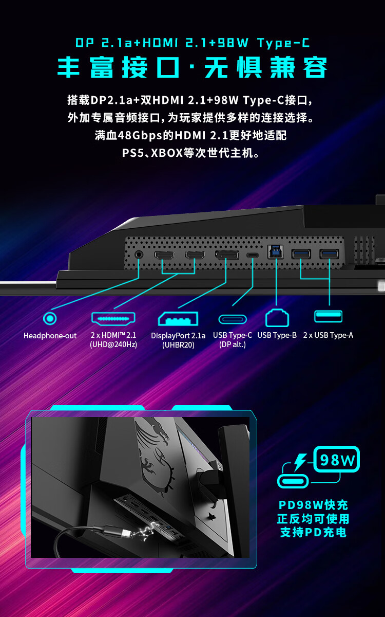 MPG 272URX QD-OLED 스트리머 27인치 4K 기본 240HZ e-스포츠 컴퓨터 LCD 모니터 화면