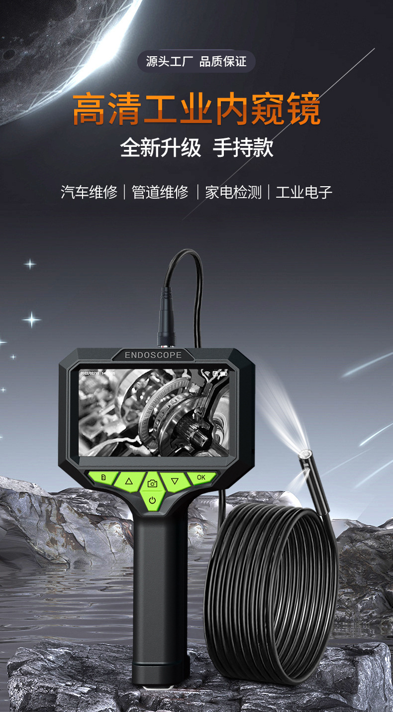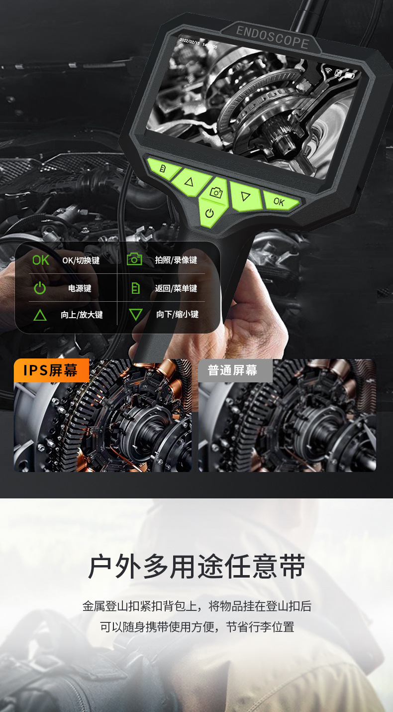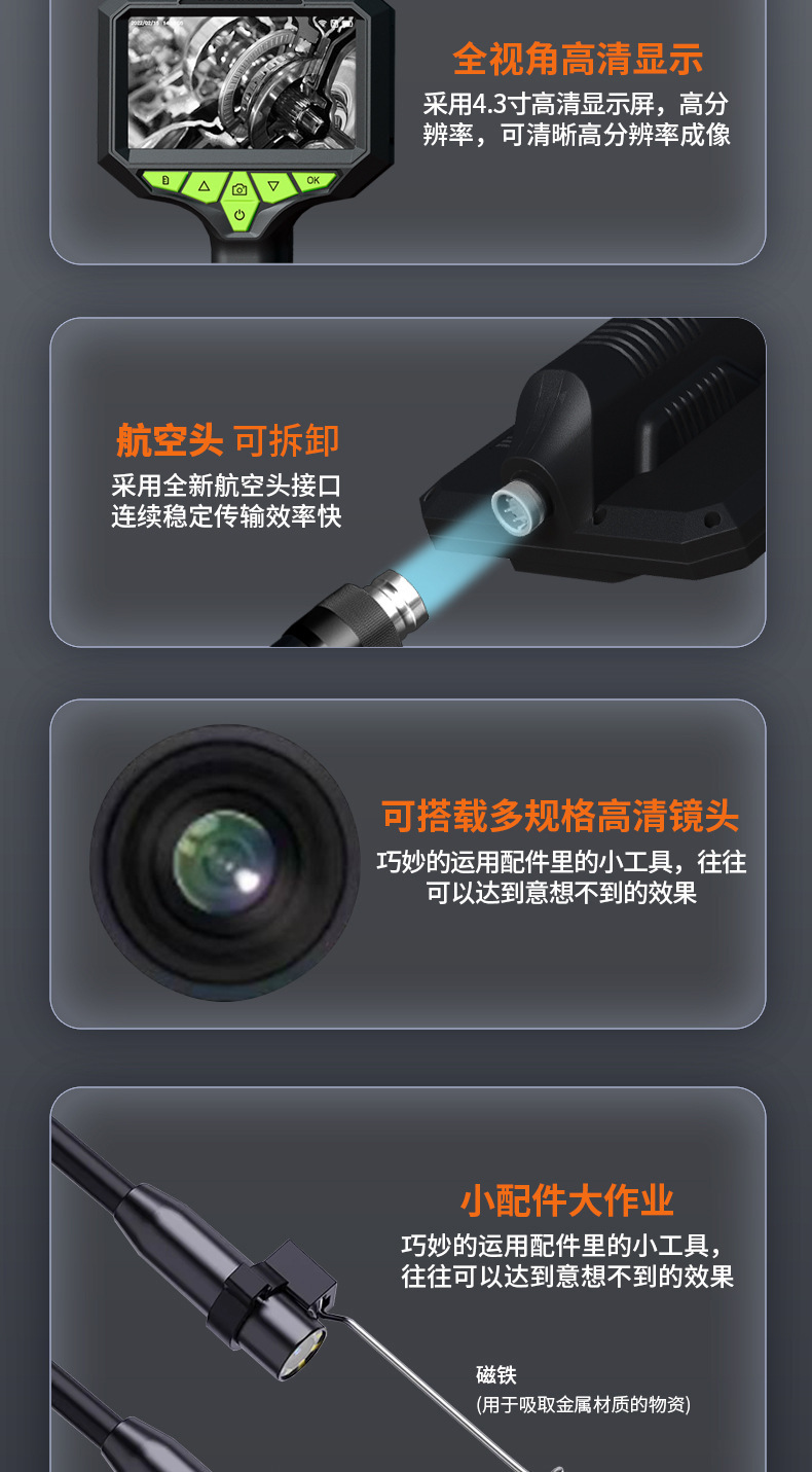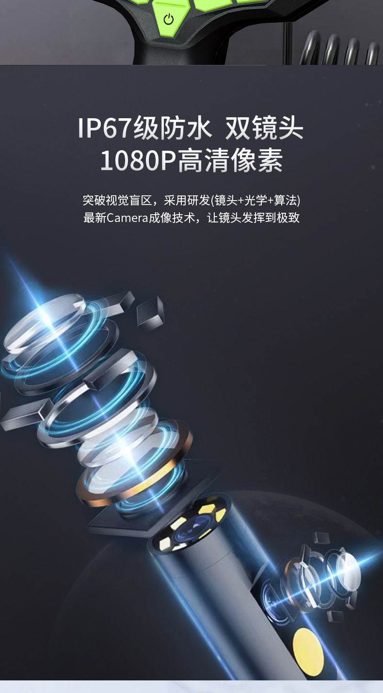 내시경 카메라 산업용 파이프라인 자동차 수리 엔진 카본 침전물 감지 프로브 광각 고화질 검사