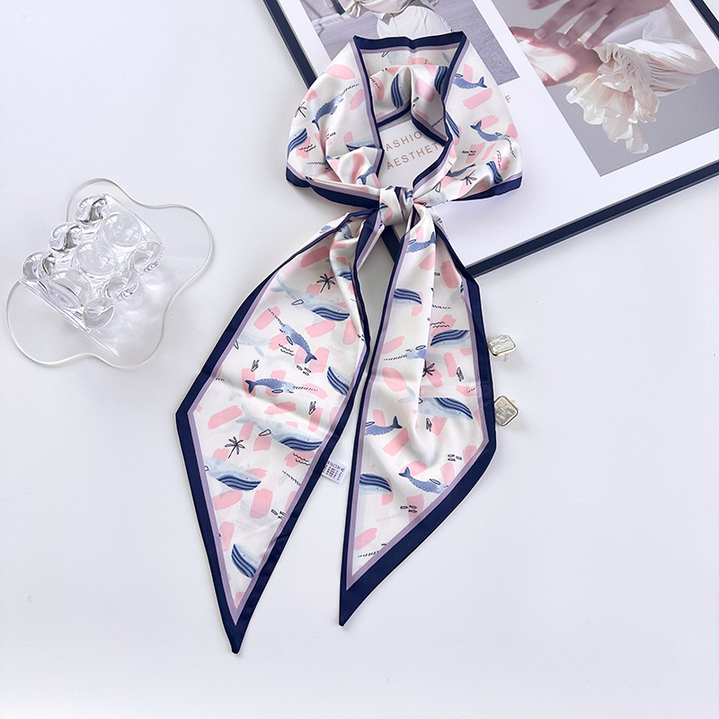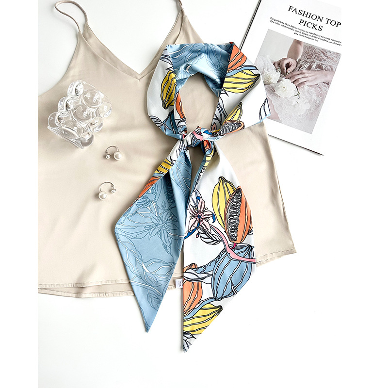 인터넷 연예인 바람 얇은 좁은 긴 작은 스카프 여성의 하이 엔드 센스 화려한 인쇄 리본 헤어 밴드 전문 스카프 도매