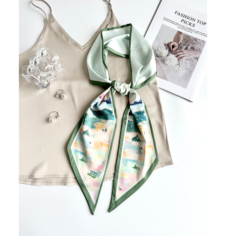 인터넷 연예인 바람 얇은 좁은 긴 작은 스카프 여성의 하이 엔드 센스 화려한 인쇄 리본 헤어 밴드 전문 스카프 도매스토어 가기