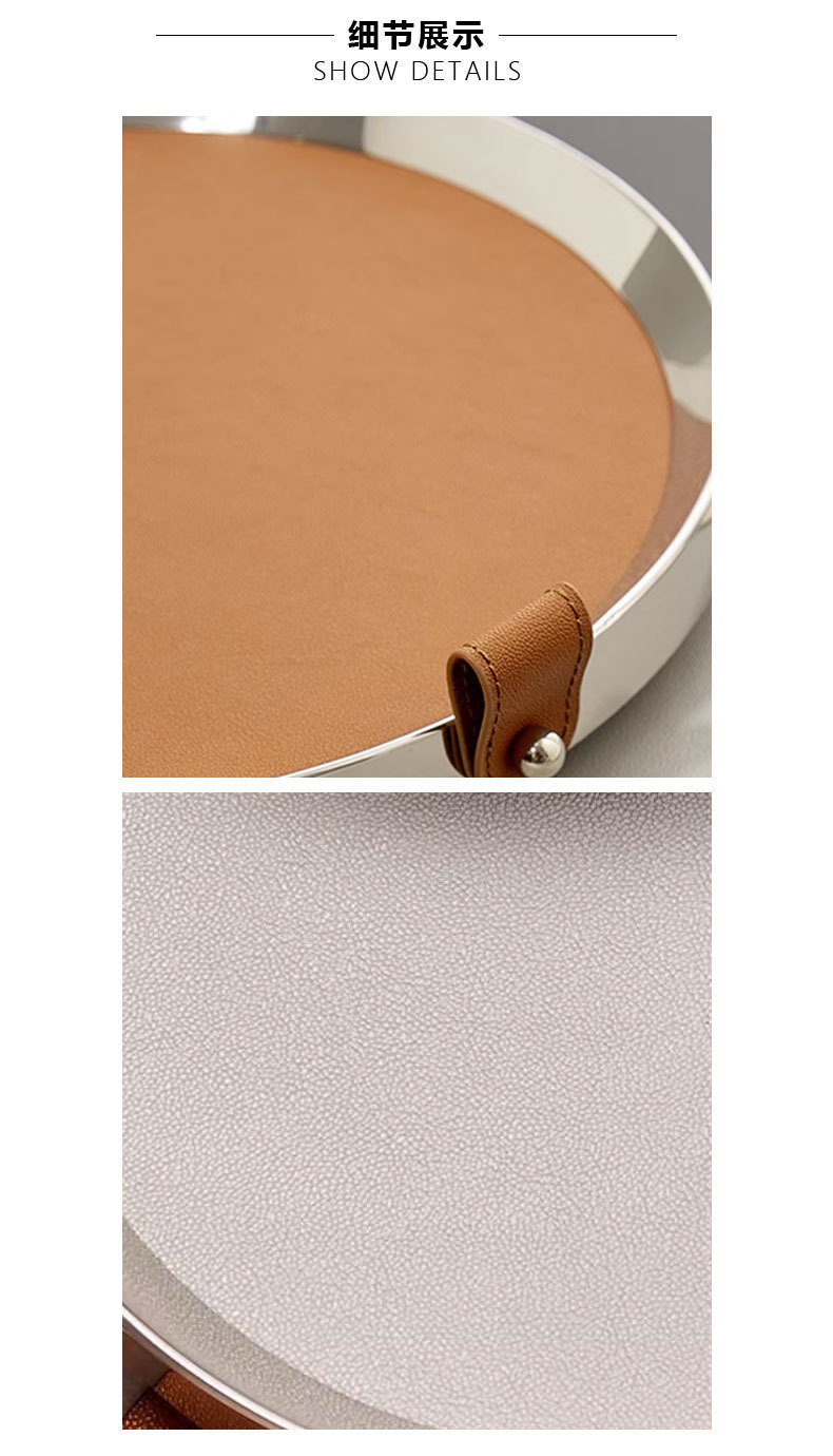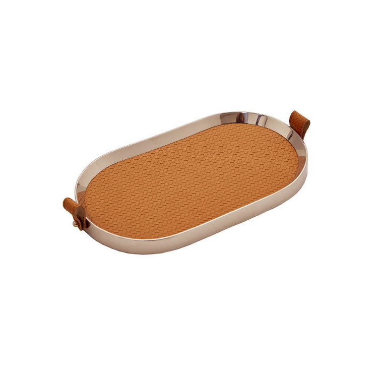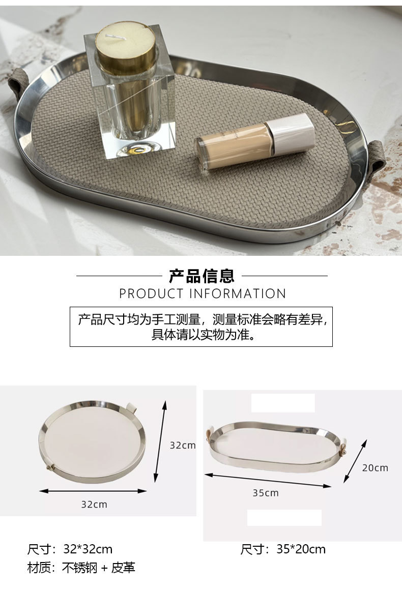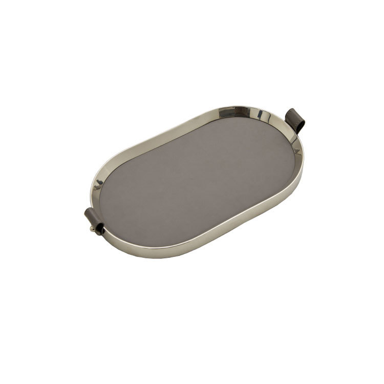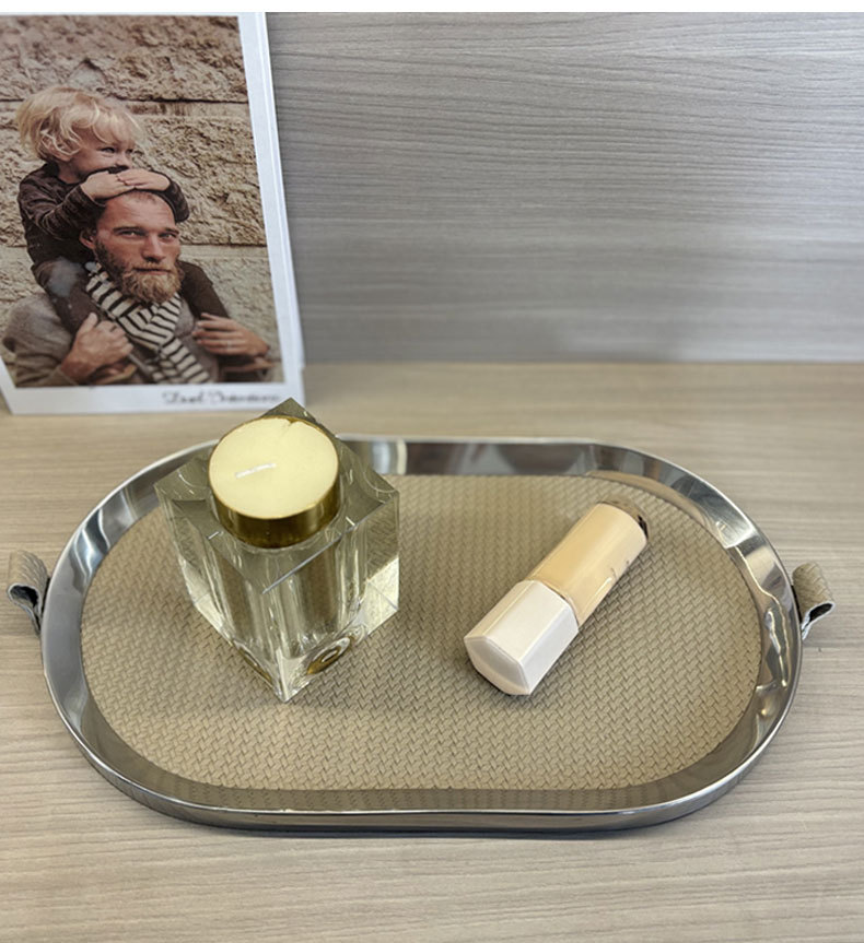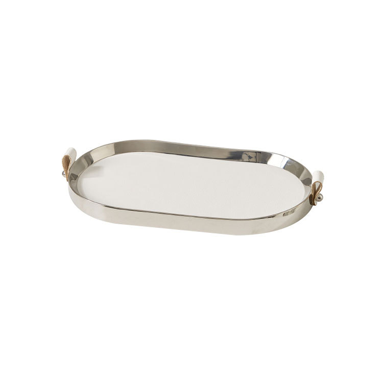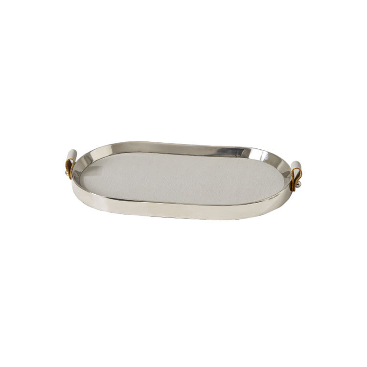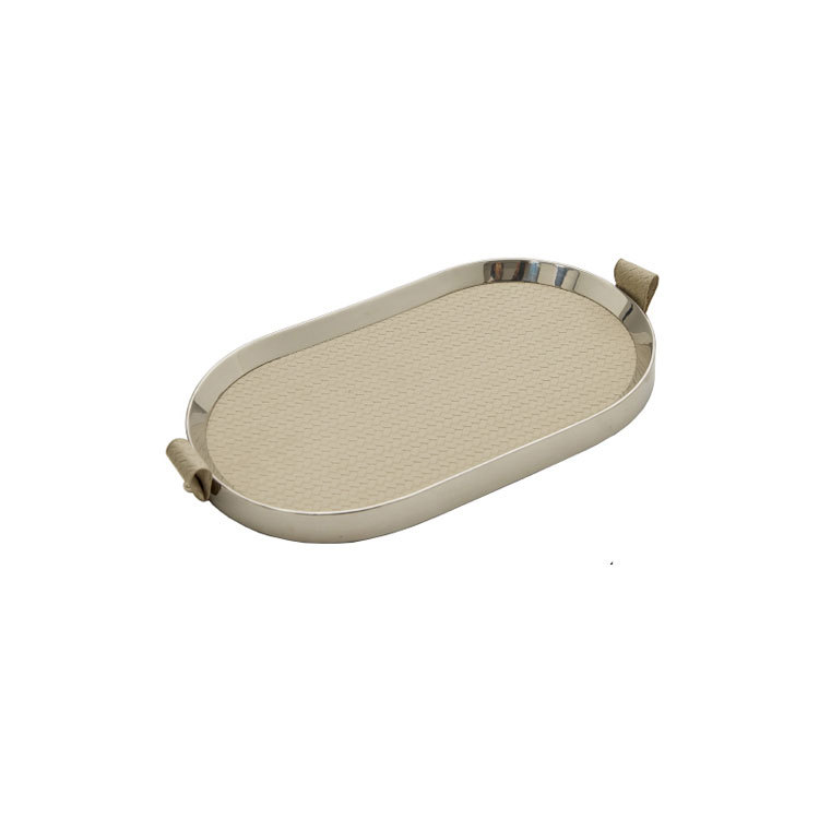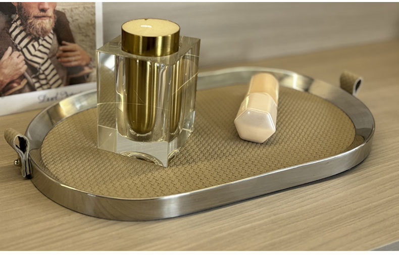 현대 미술 금속 가죽 타원형 트레이 모델 룸 욕실 홈 쥬얼리 장식 스토리지 장식품