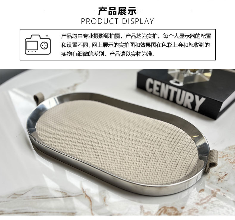 현대 미술 금속 가죽 타원형 트레이 모델 룸 욕실 홈 쥬얼리 장식 스토리지 장식품스토어 가기