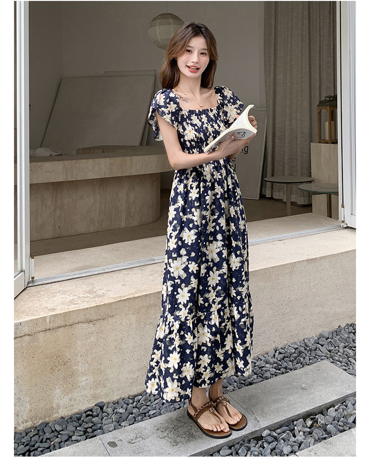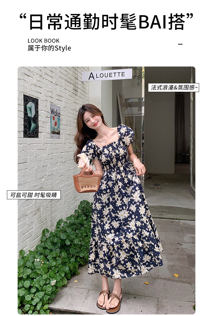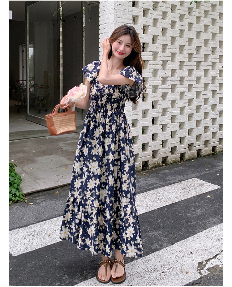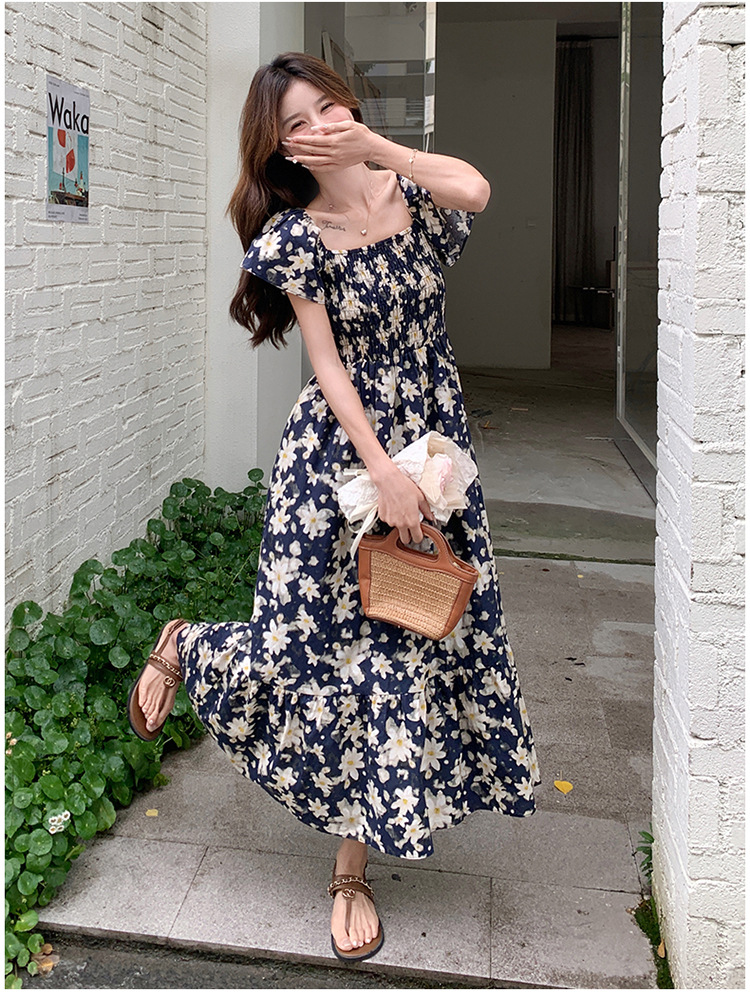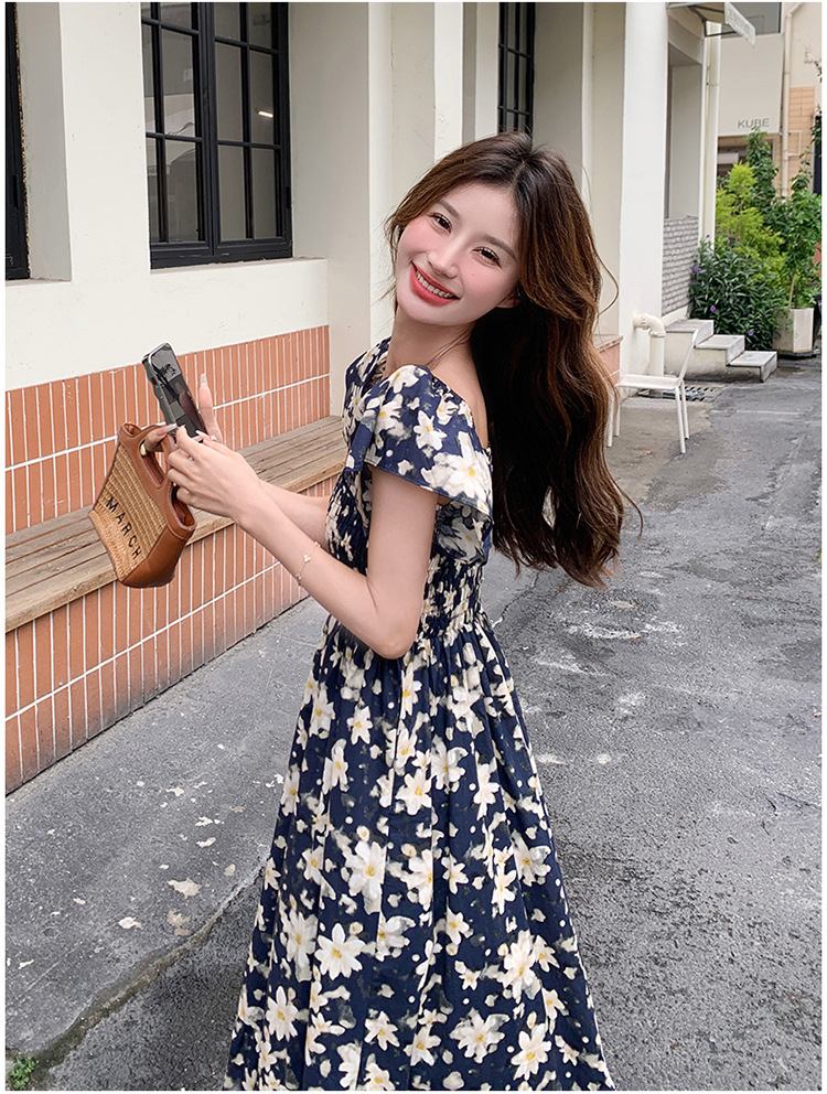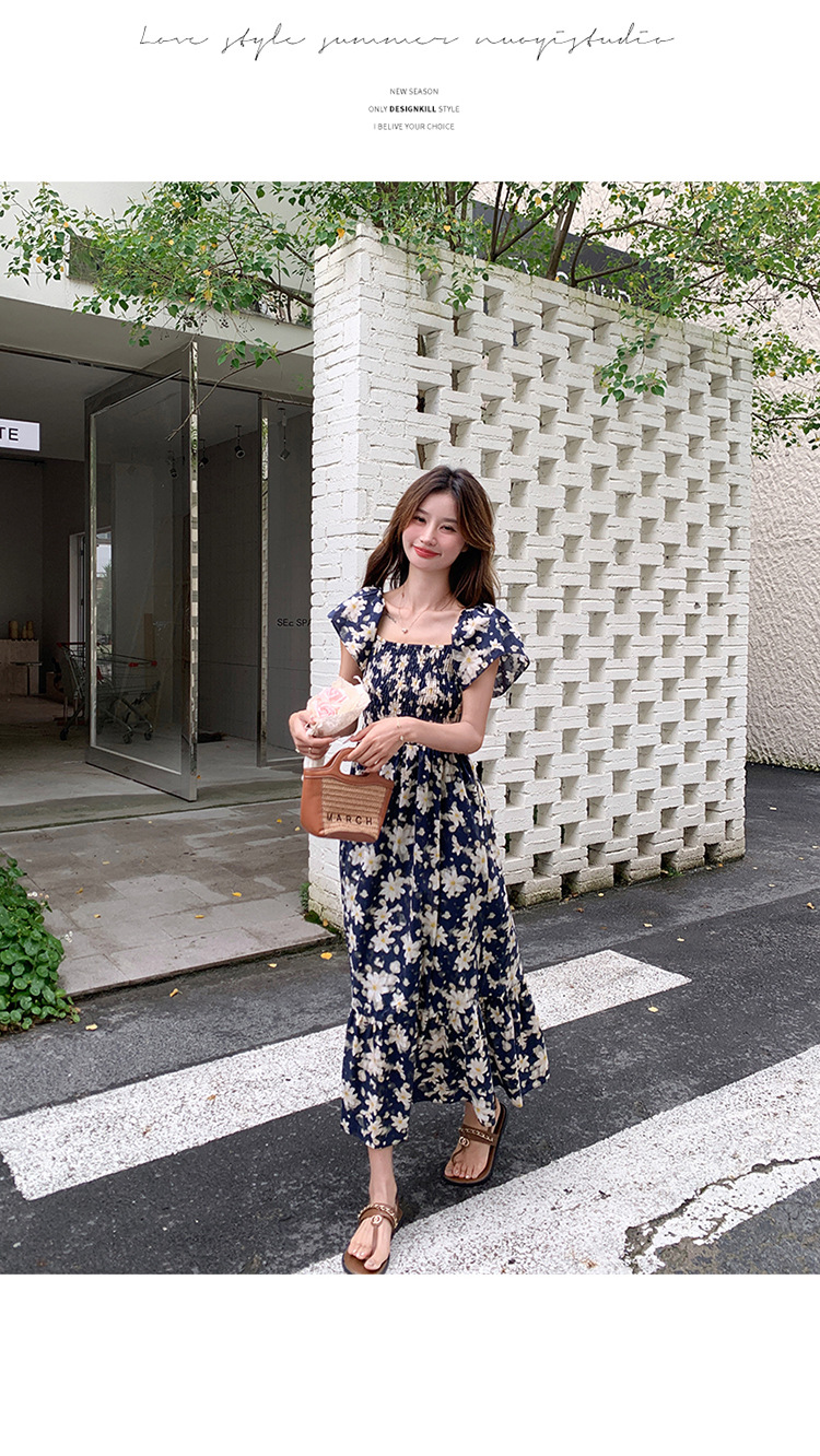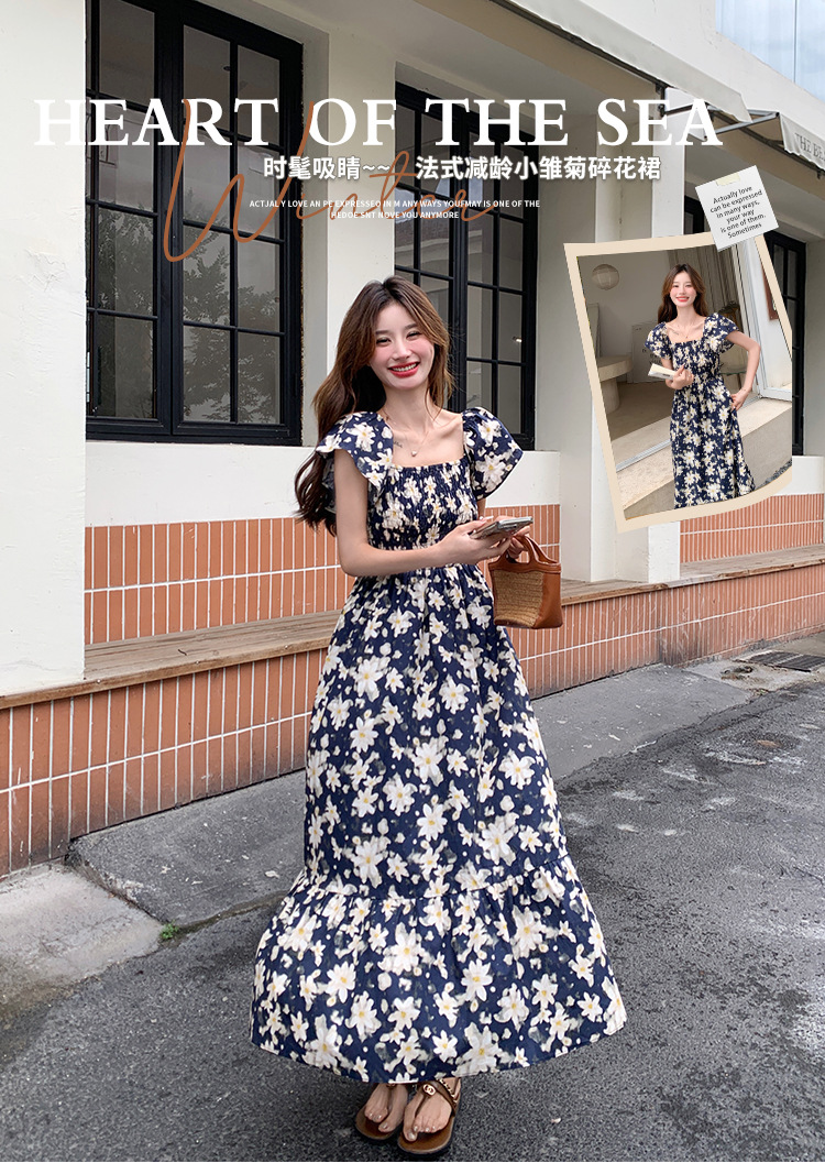 리얼 샷 라이트 성숙한 바람 작은 비행 소매 꽃 원피스 여성 여름 새로운 스타일 작은 허리 디자인 나이 감소 스커트스토어 가기