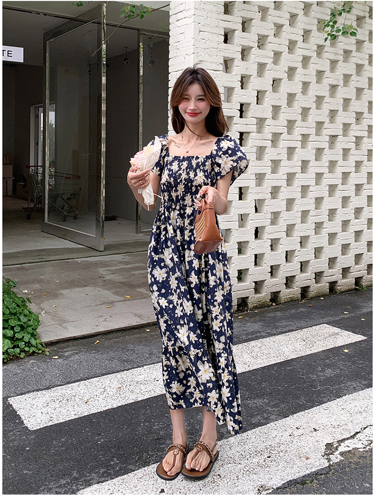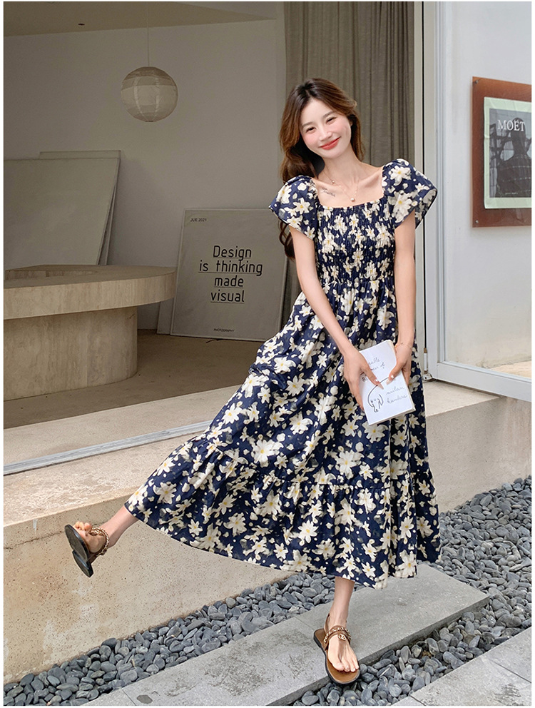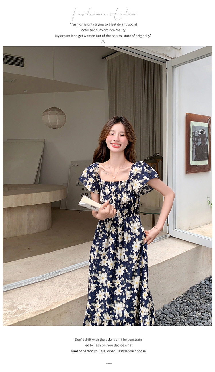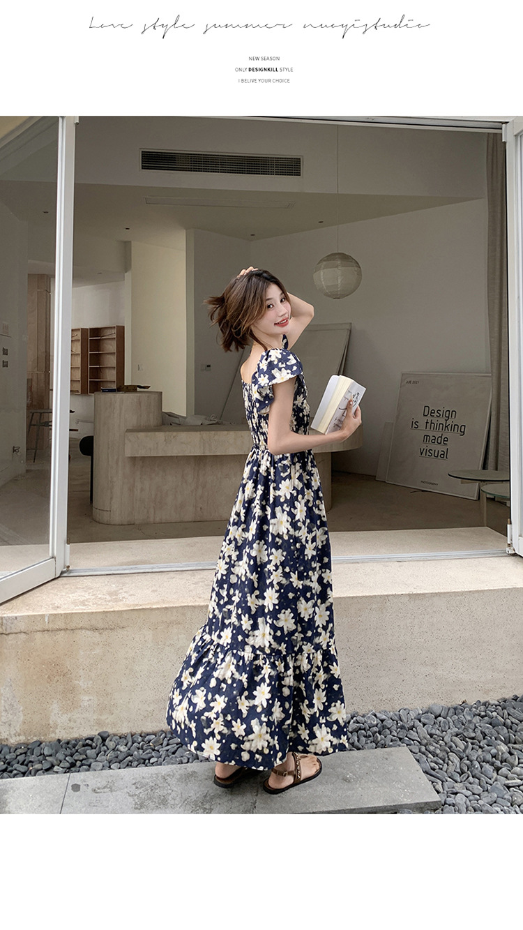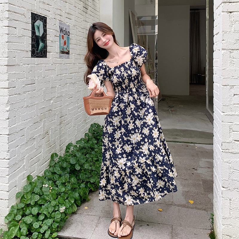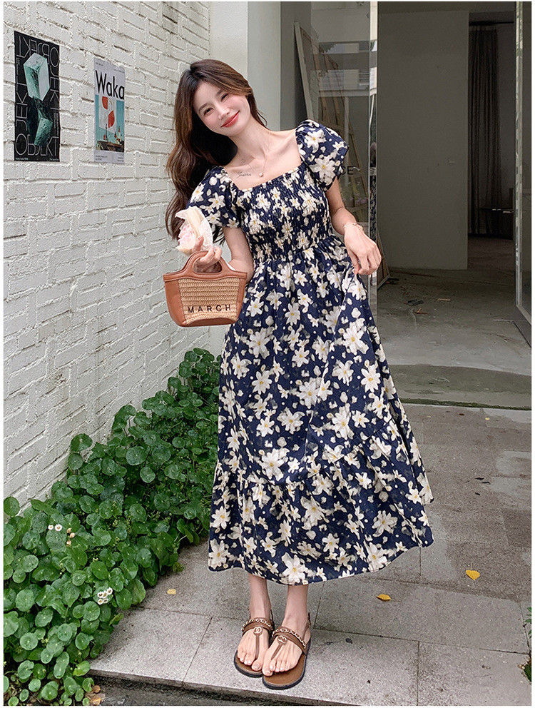 리얼 샷 라이트 성숙한 바람 작은 비행 소매 꽃 원피스 여성 여름 새로운 스타일 작은 허리 디자인 나이 감소 스커트스토어 가기