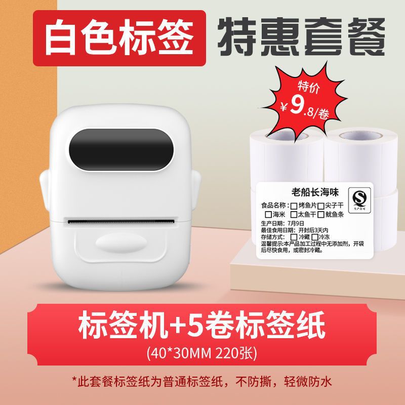 • 흰색 [12-50mm 인쇄 가능] - 독립형 기계 + 흰색 방수 라벨 5롤