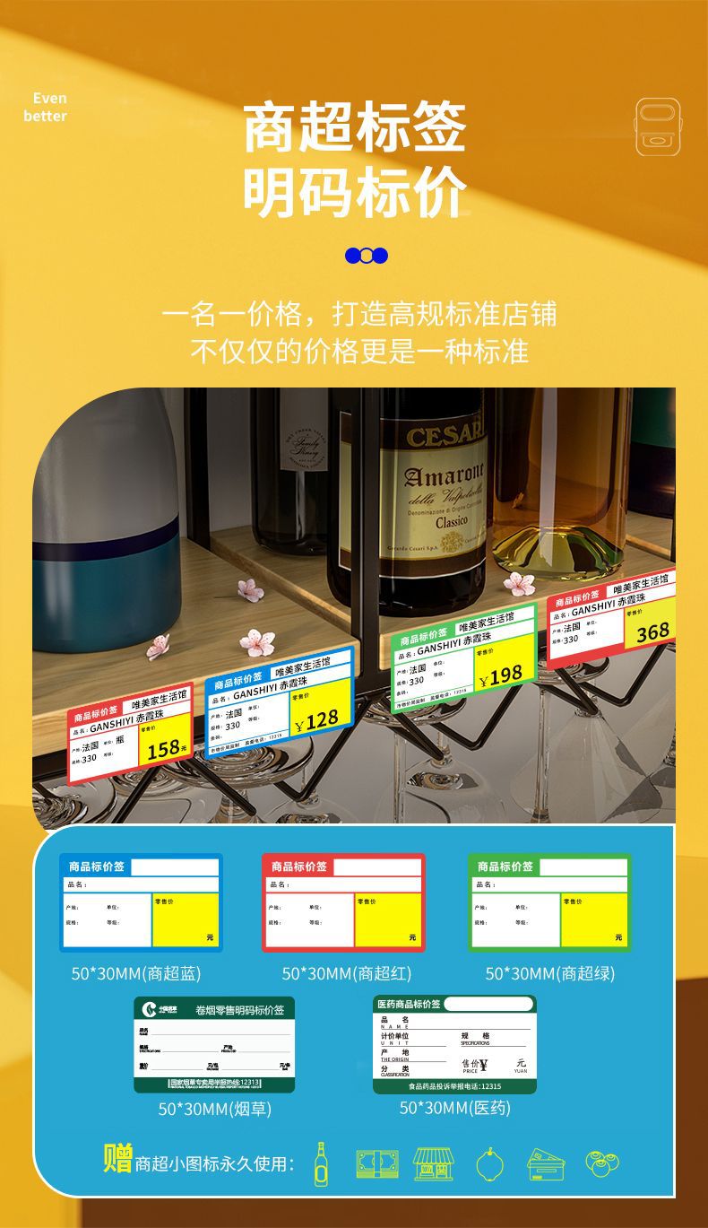• 크림색 노란색 [12-50mm 인쇄 가능] - 종이 롤 1개 선택 [슈퍼마켓/보석류]