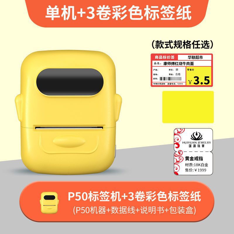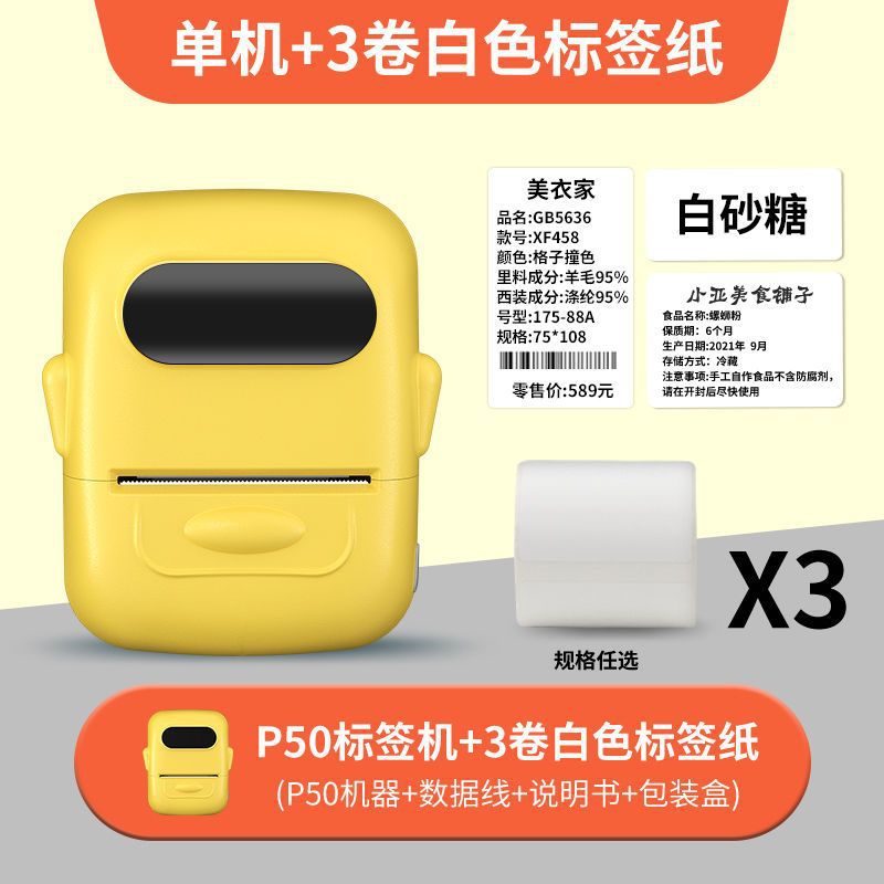 • 크림색 노란색 [12-50mm 인쇄 가능] - 독립형 기계 + 흰색 방수 라벨 3롤