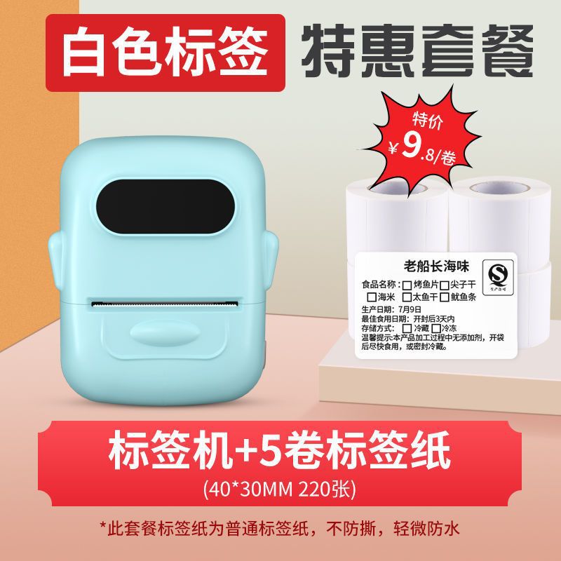 • 바비 파우더 [12-50mm 인쇄 가능] - 독립형 기계 + 흰색 방수 라벨 5롤